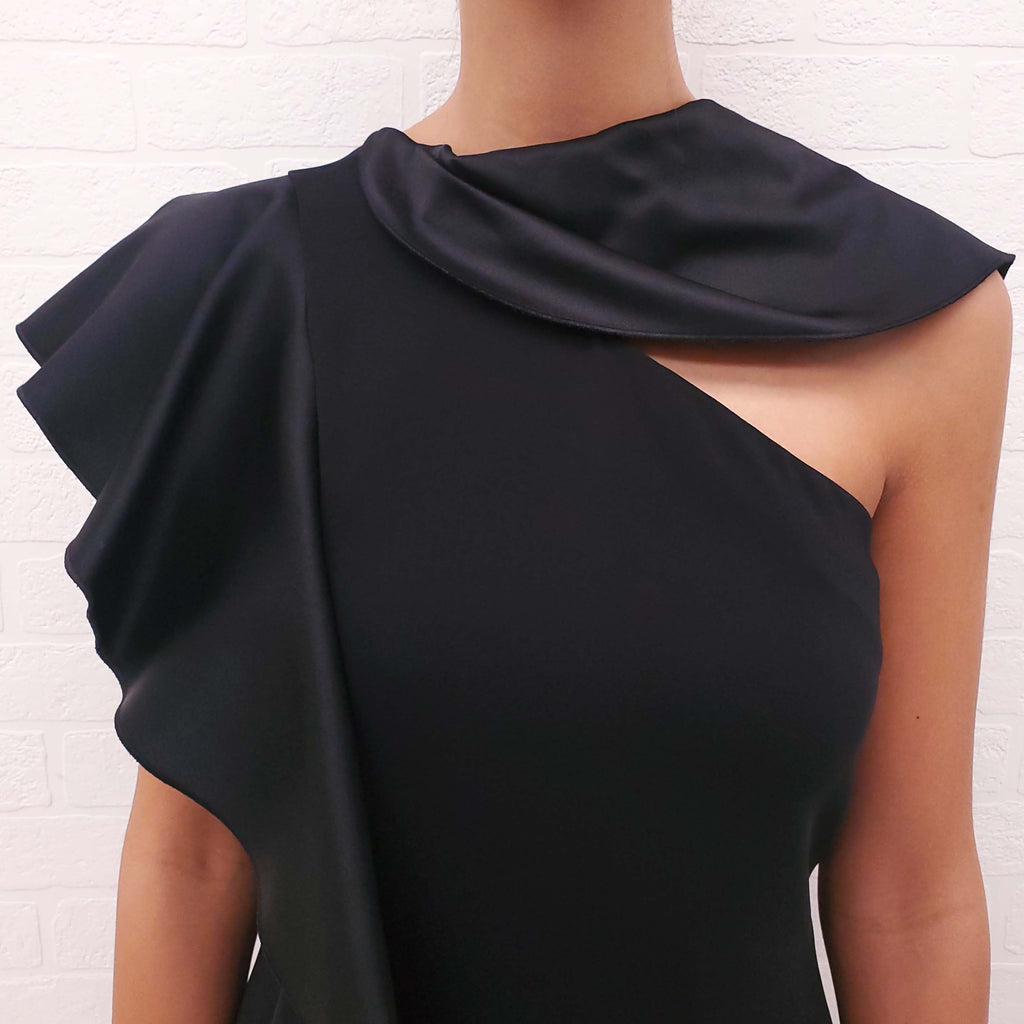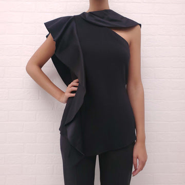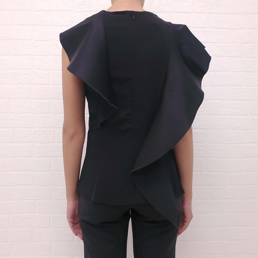 OSCAR DE LA RENTA BLACK BLOUSE WITH RUFFLE DETAIL - SIZE 2