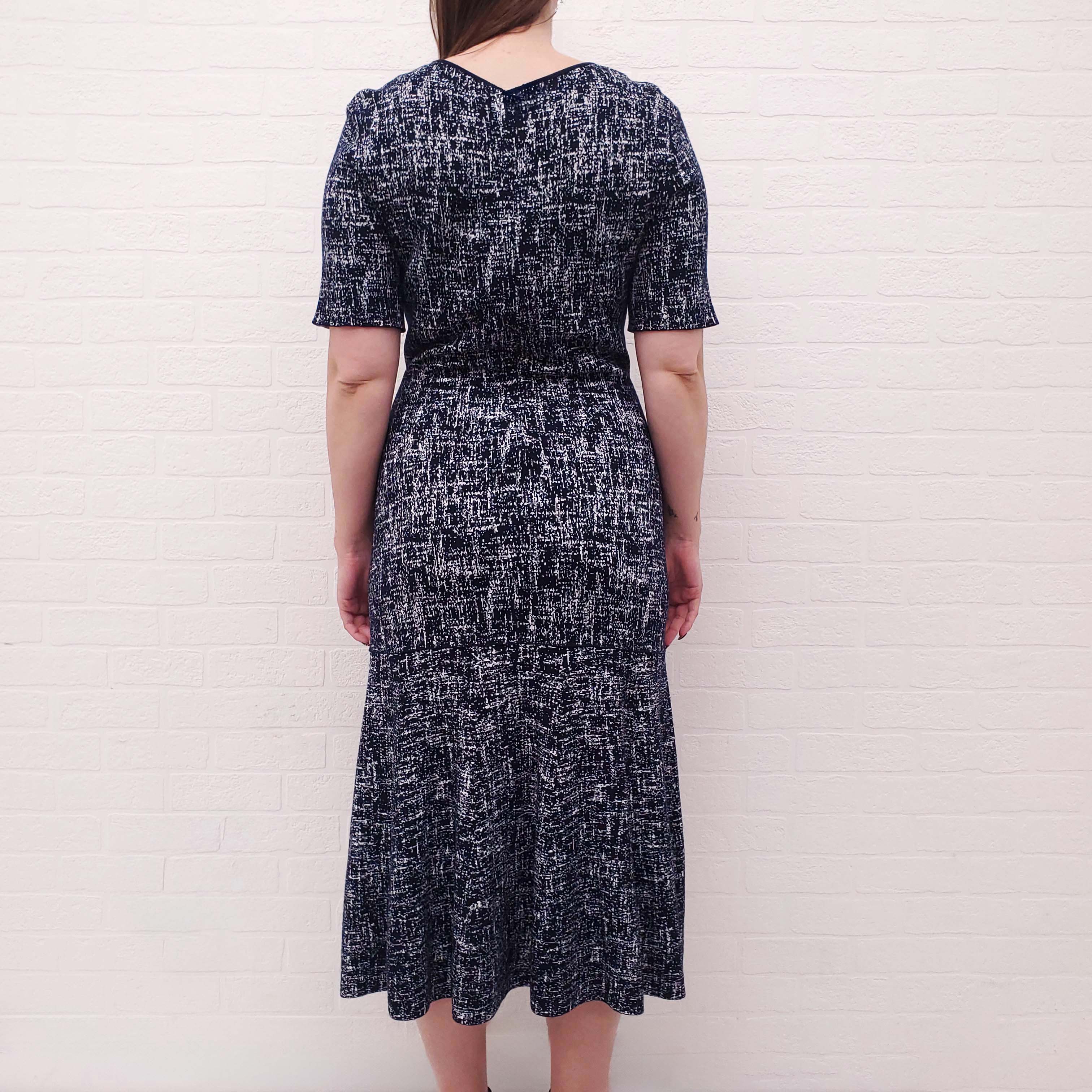 OSCAR DE LA RENTA NAVY AND WHITE PATTERNED KNIT DRESS - SIZE XL