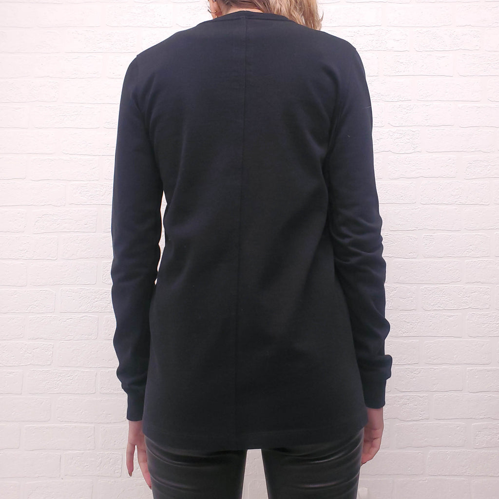RICK OWENS BLACK SWEATSHIRT WITH SILK LAYERED DETAIL - SIZE 4