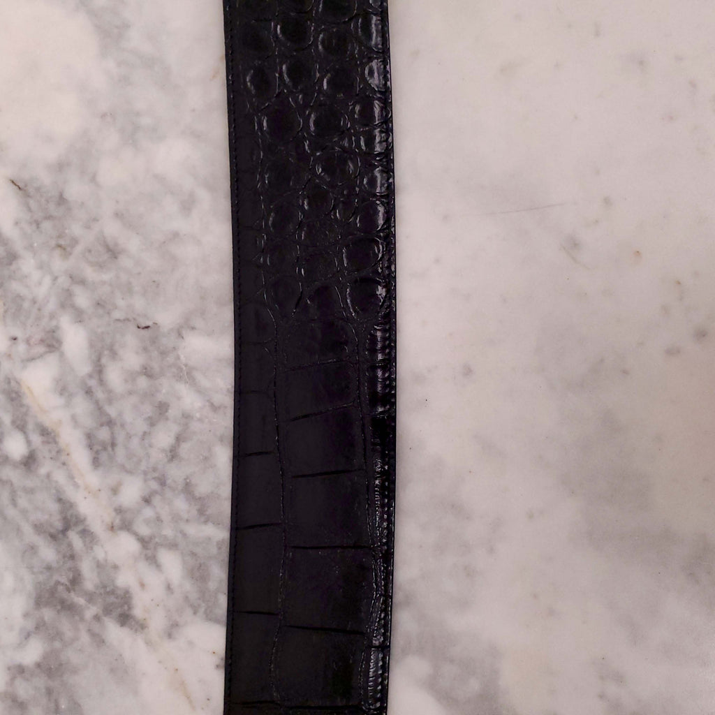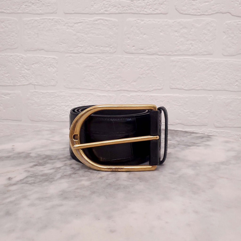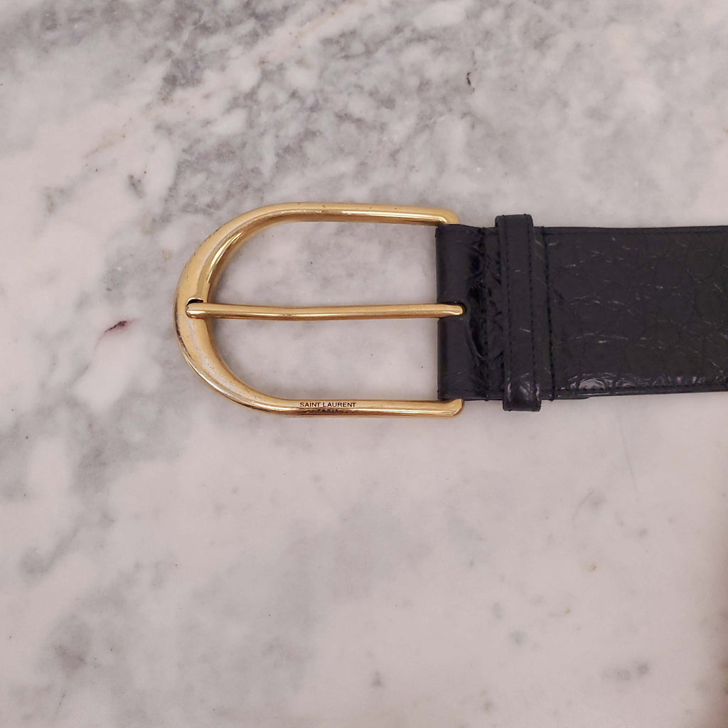 SAINT LAURENT BLACK CROC EFFECT LARGE BUCKLE BELT - SIZE 80