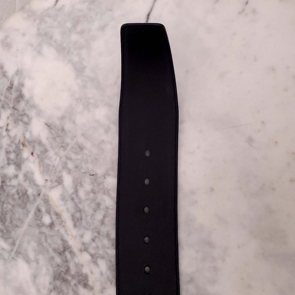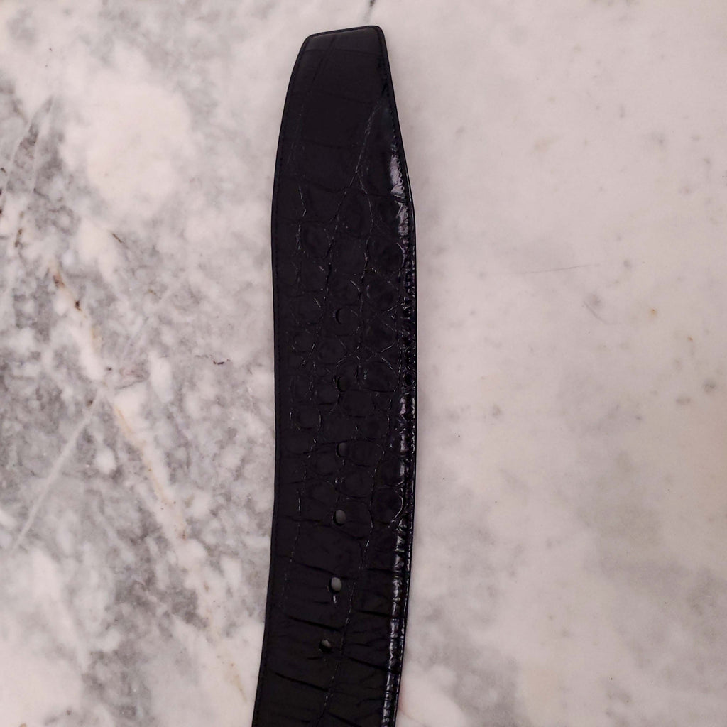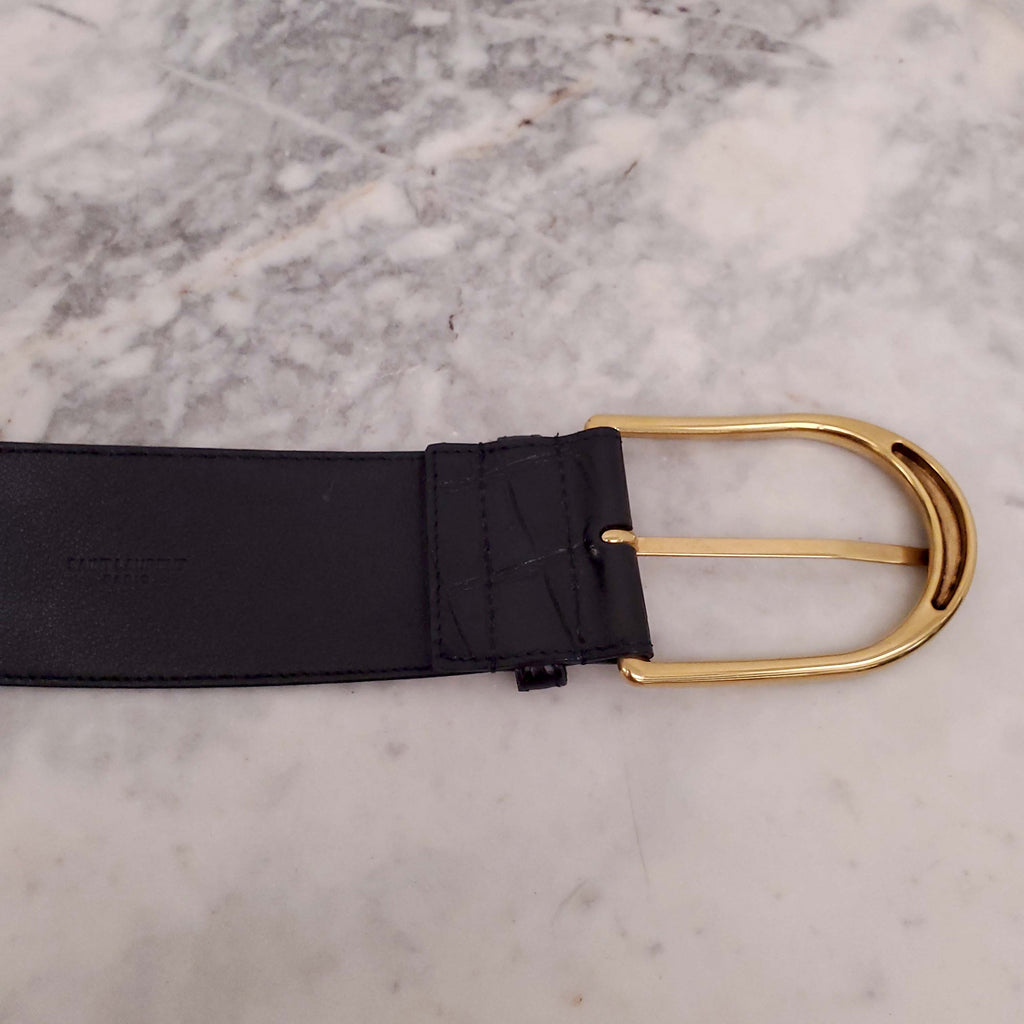 SAINT LAURENT BLACK CROC EFFECT LARGE BUCKLE BELT - SIZE 80