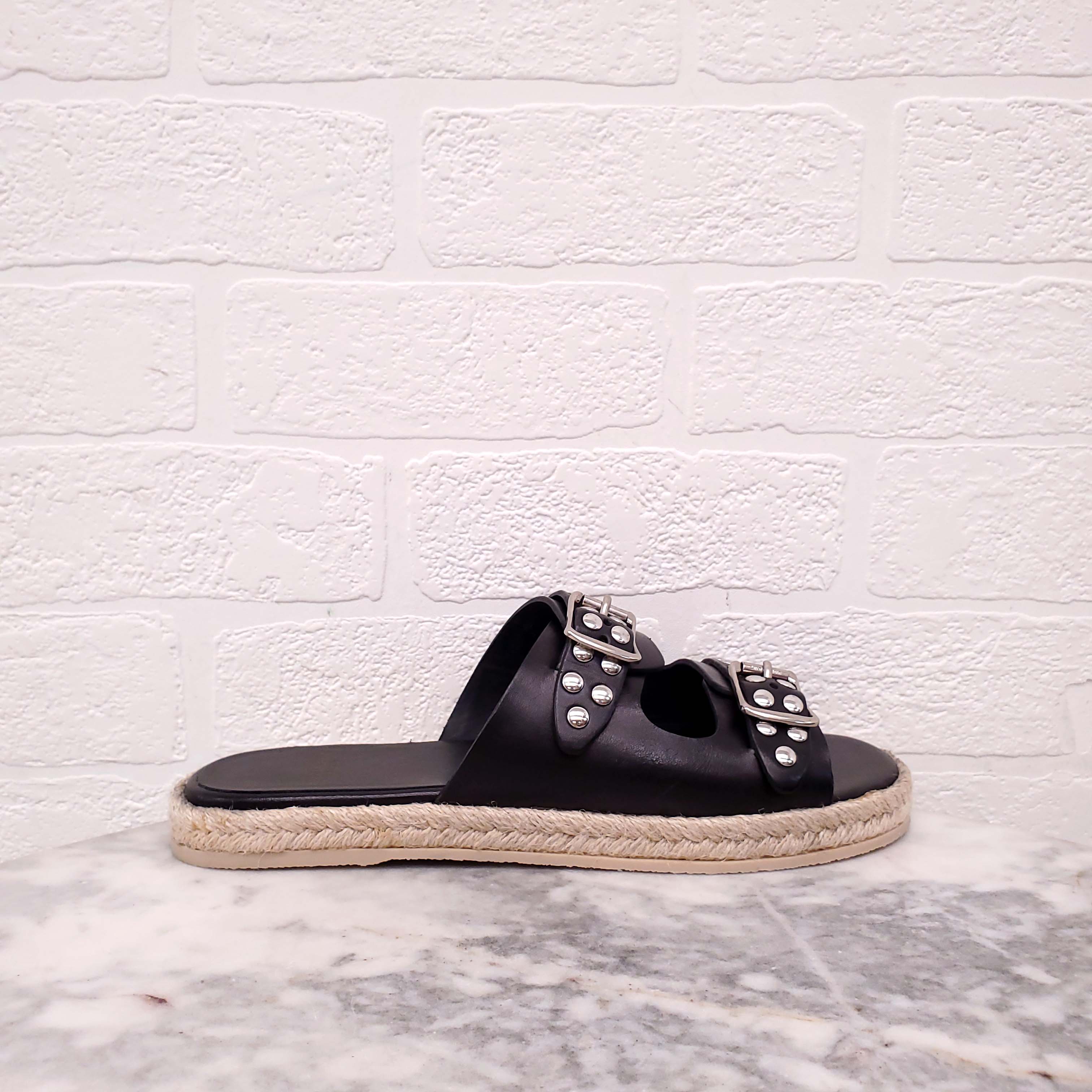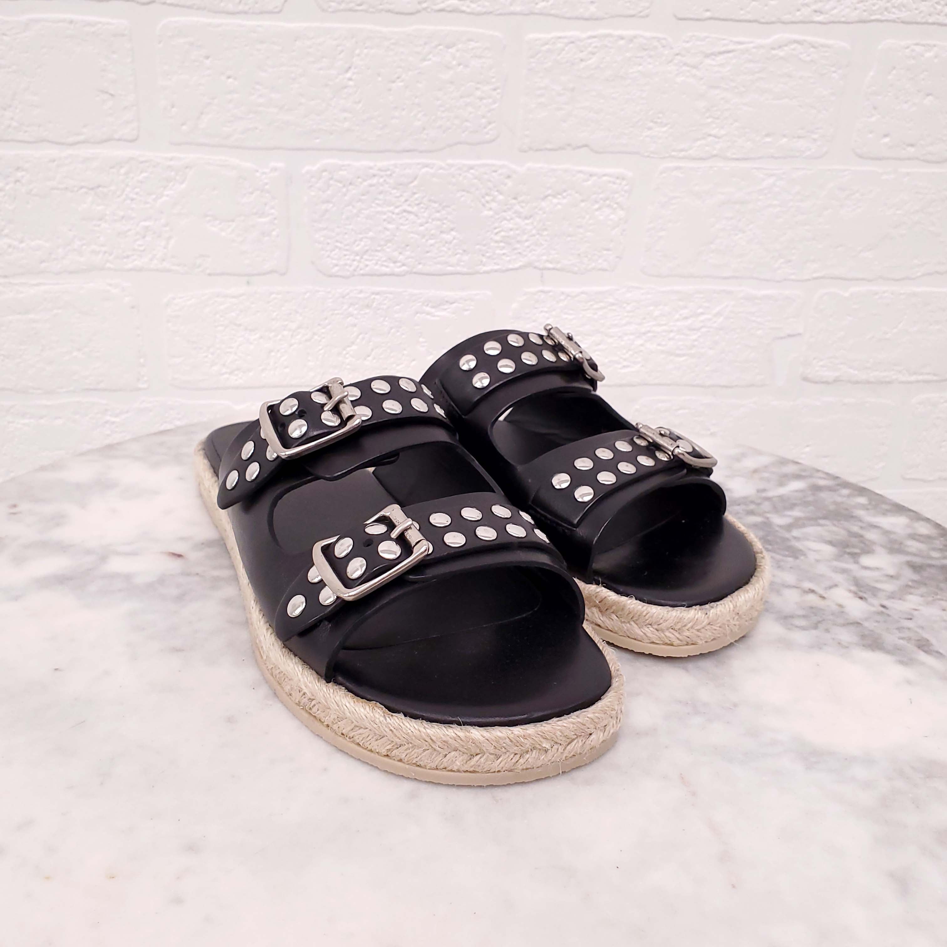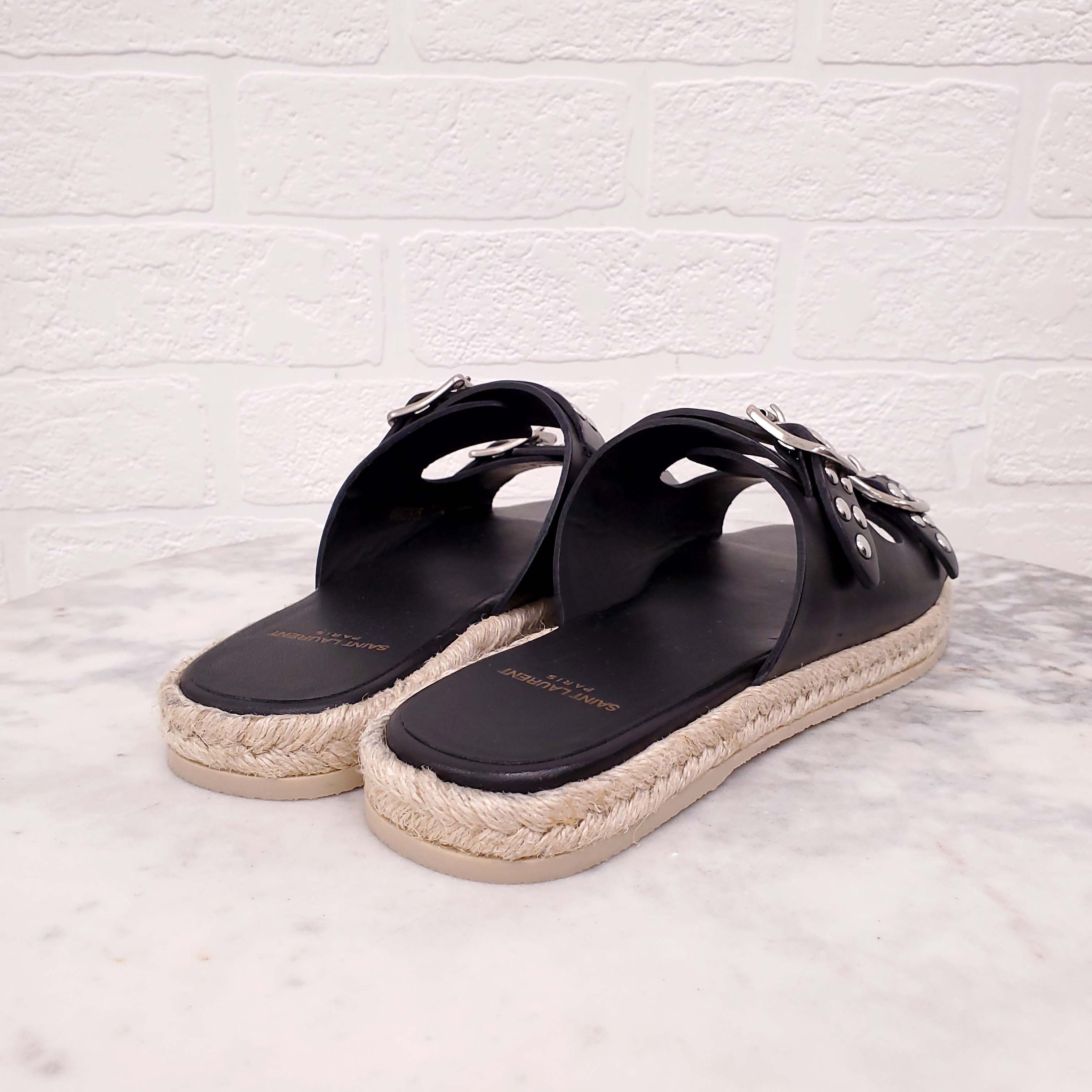 SAINT LAURENT BLACK STUDDED SANDALS WITH BUCKLE - SIZE 37.5