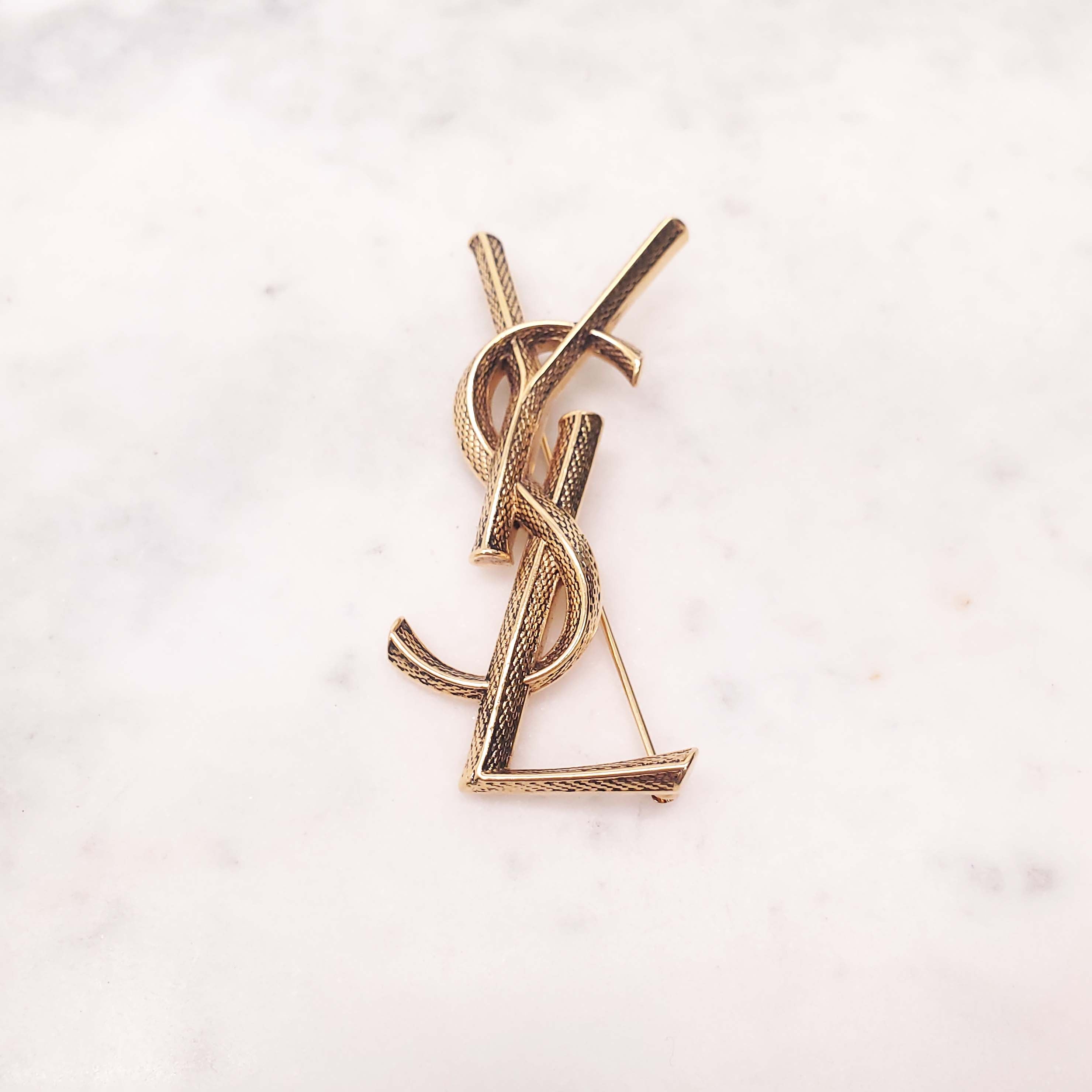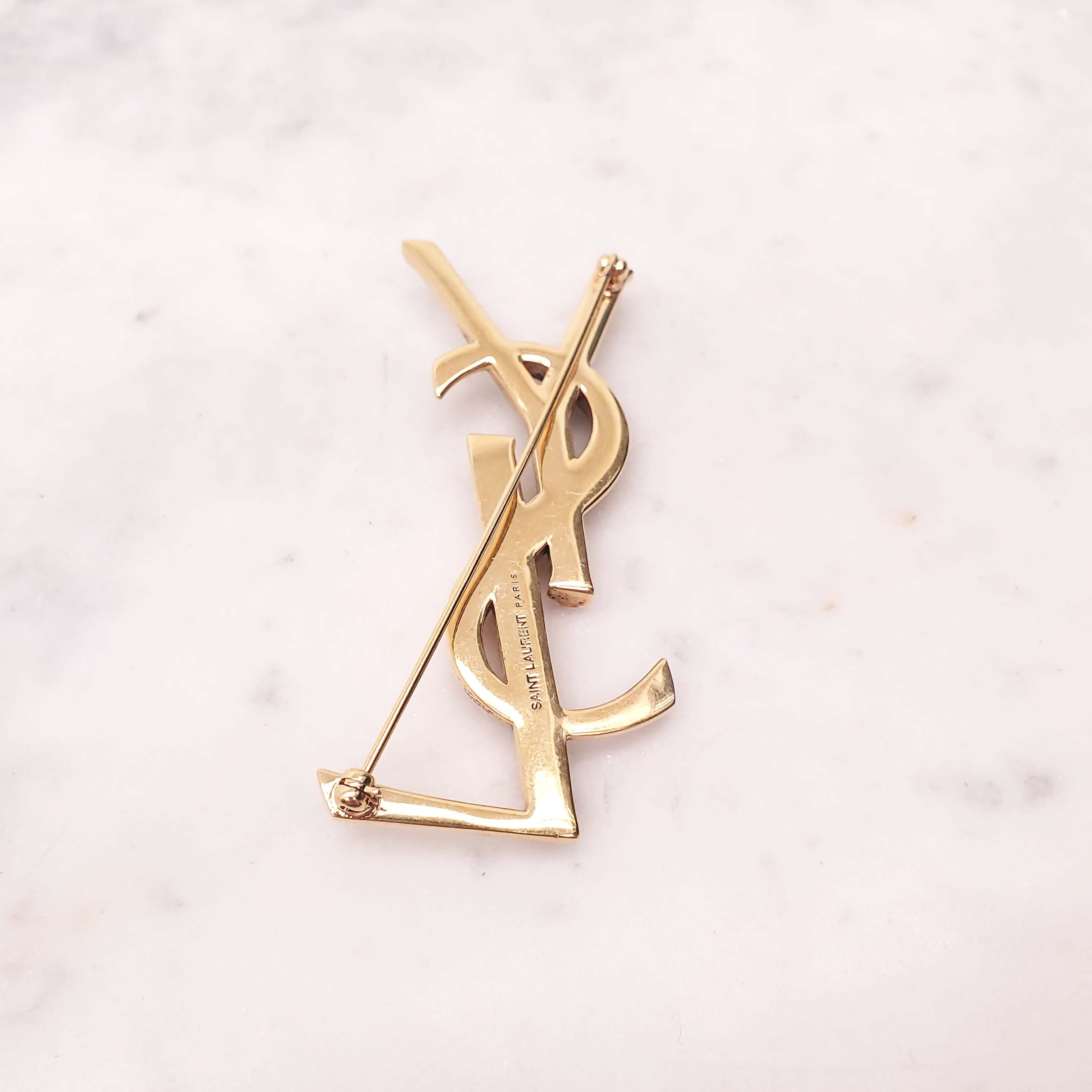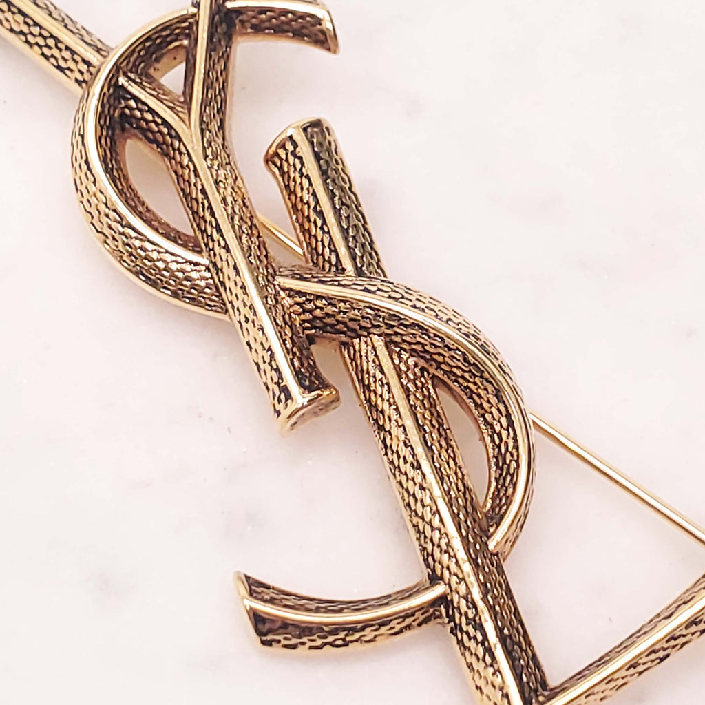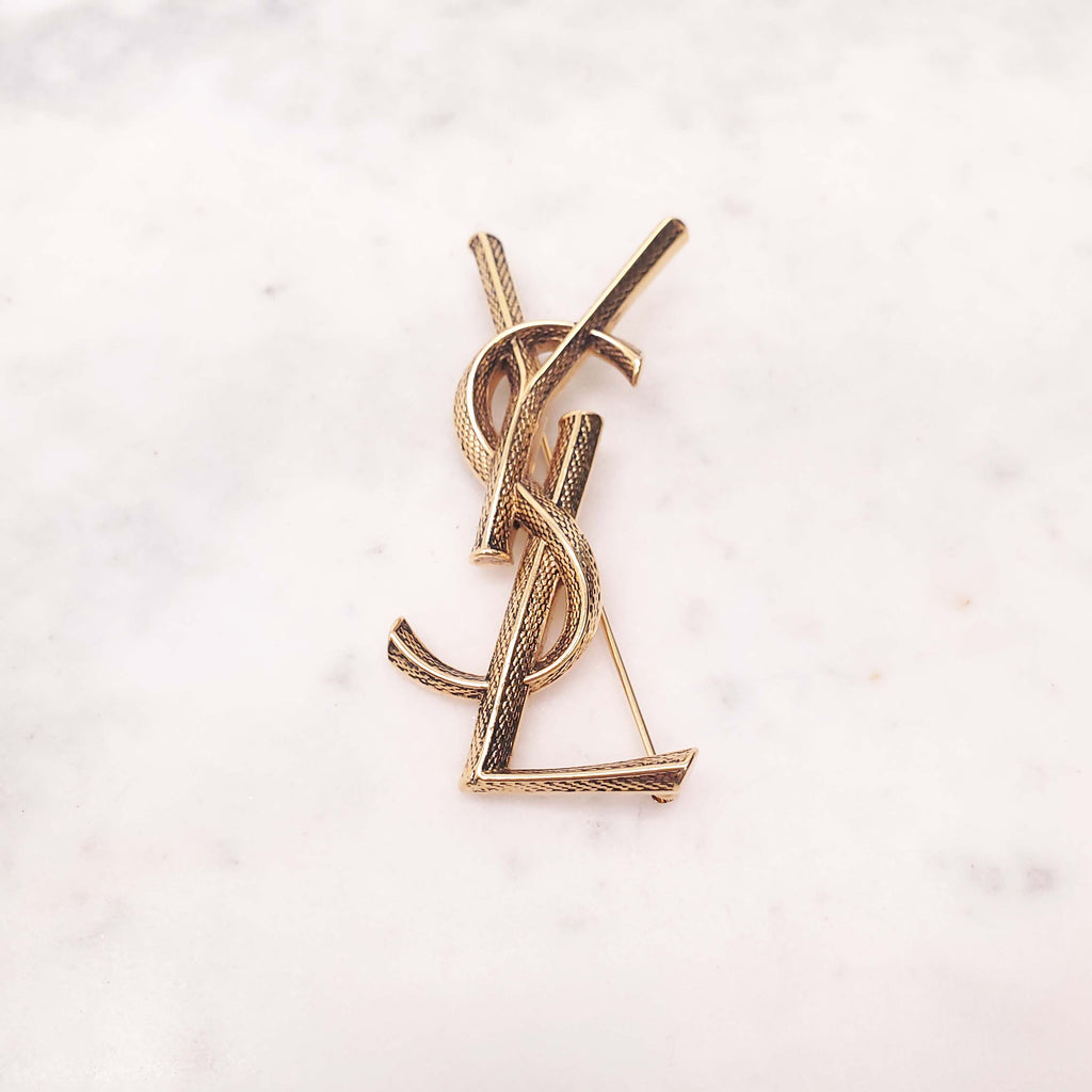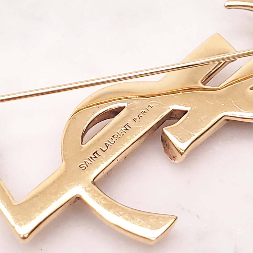 SAINT LAURENT GOLD LOGO BROOCH