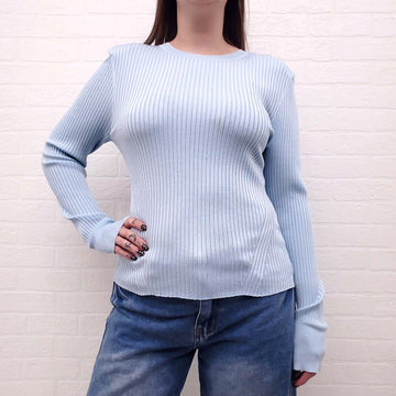 VERONICA BEARD BABY BLUE RIBBED SWEATER - SIZE L