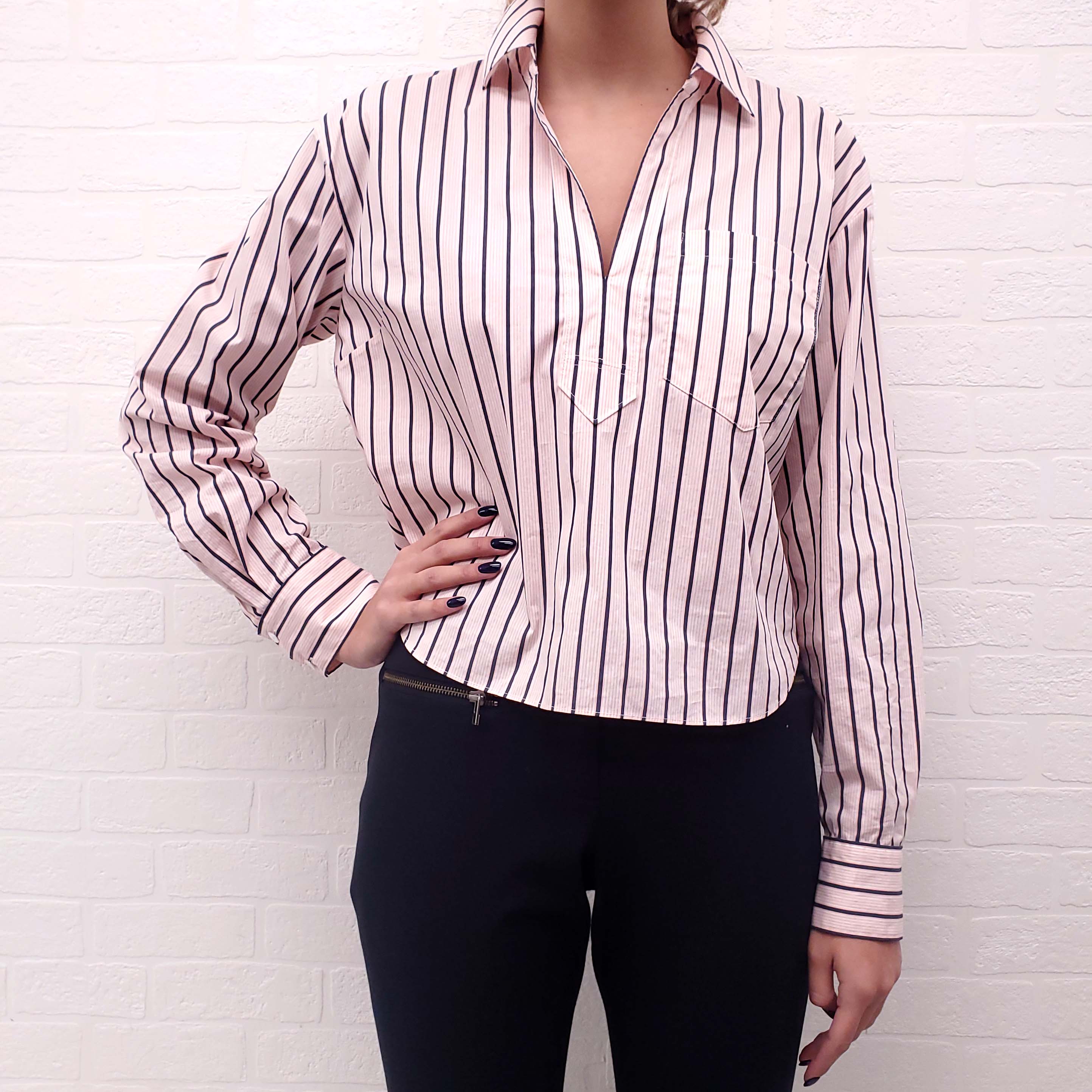 VERONICA BEARD PINK STRIPED COTTON BLOUSE - SIZE 4