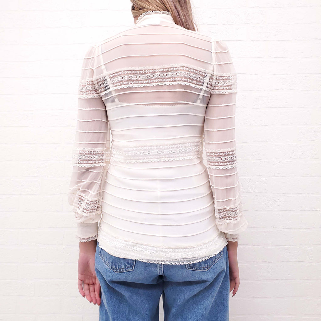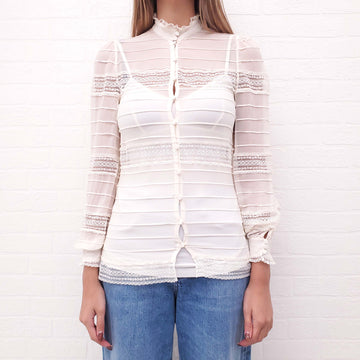 ZIMMERMANN CREAM SILK LACE BLOUSE - SIZE 0/XS