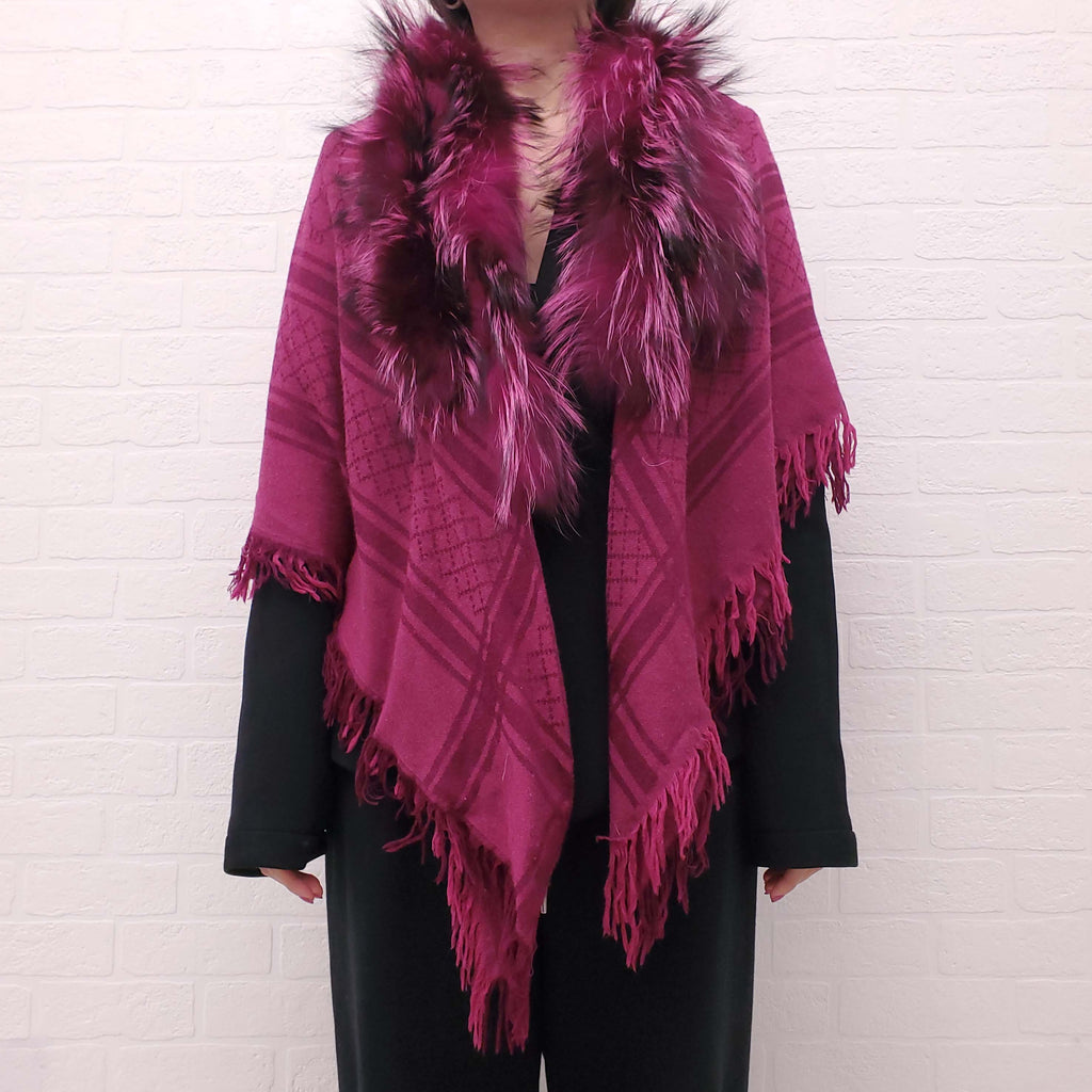 GUCCI FUCHSIA LOGO SCARF WITH FOX FUR