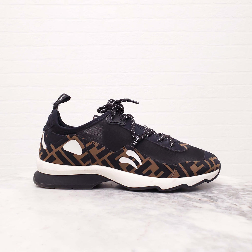 FENDI BLACK AND BROWN LOGO SLIP ON SNEAKERS - SIZE 42