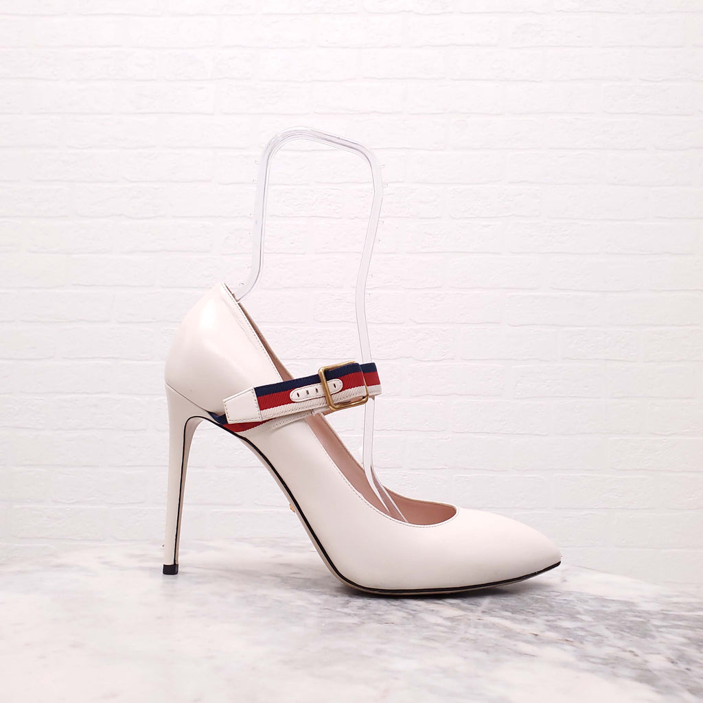 GUCCI CREAM SYLVIE HEELS WITH RIBBON DETAIL - SIZE 42