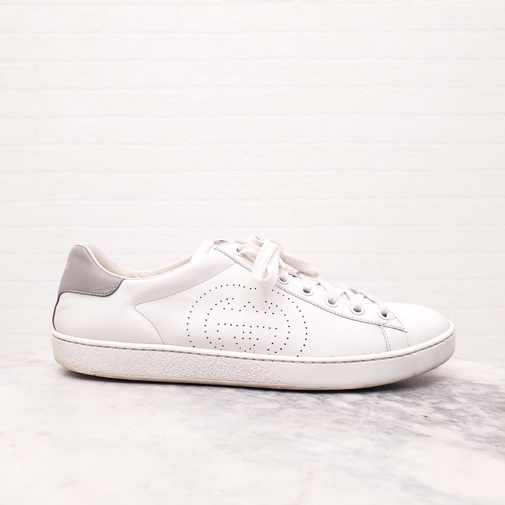 GUCCI WHITE PERFORATED LOGO SNEAKERS - SIZE 42