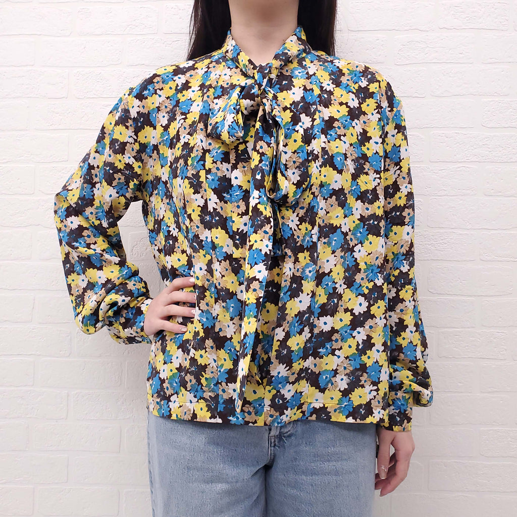 PLAN C BLUE AND YELLOW SILK FLORAL BLOUSE - SIZE 42