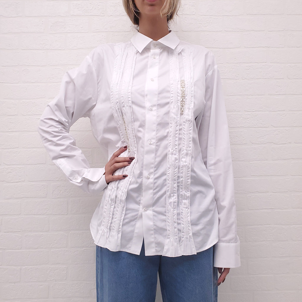 SIMONE ROCHA WHITE BLOUSE WITH PEARL DETAILS - SIZE L