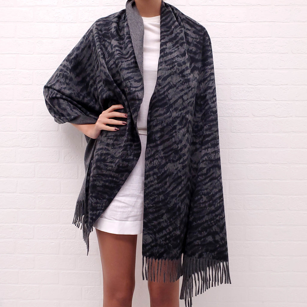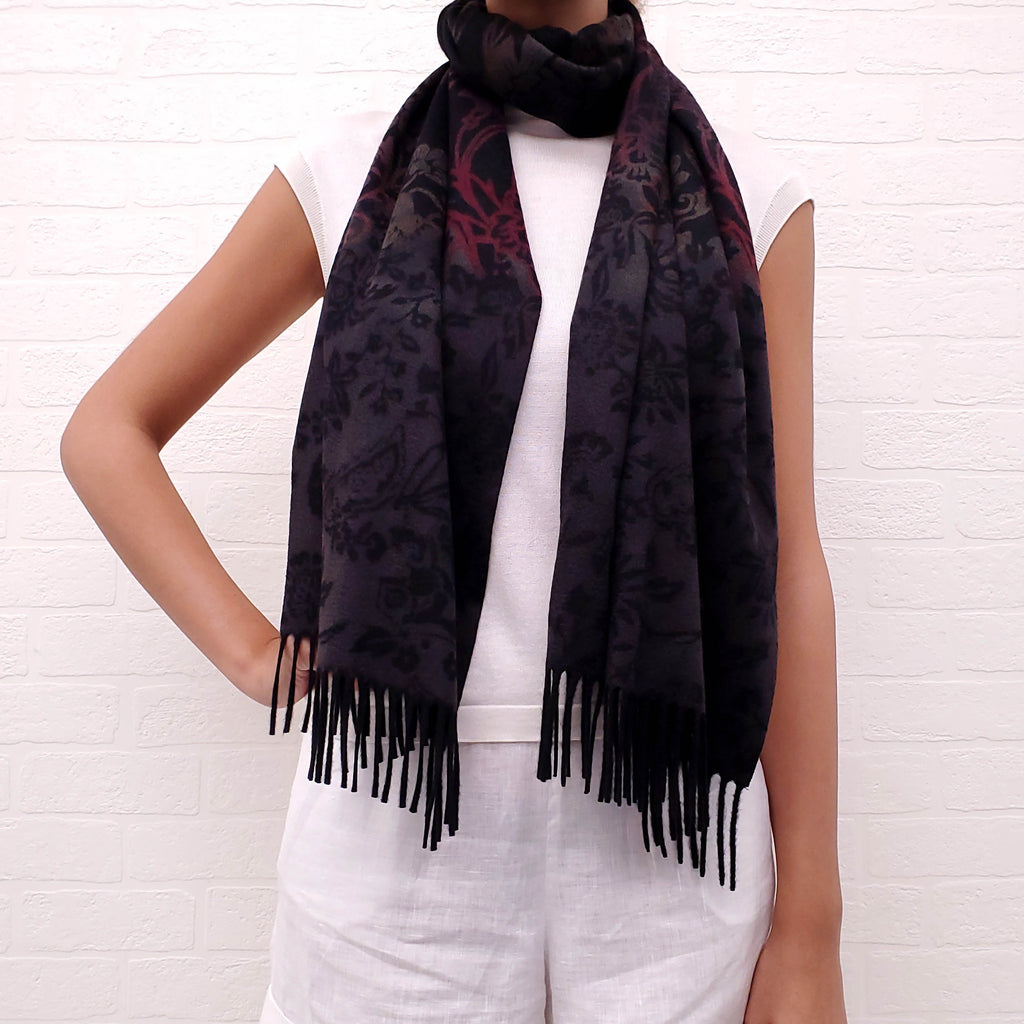 LORO PIANA BLACK FLORAL CASHMERE SCARF