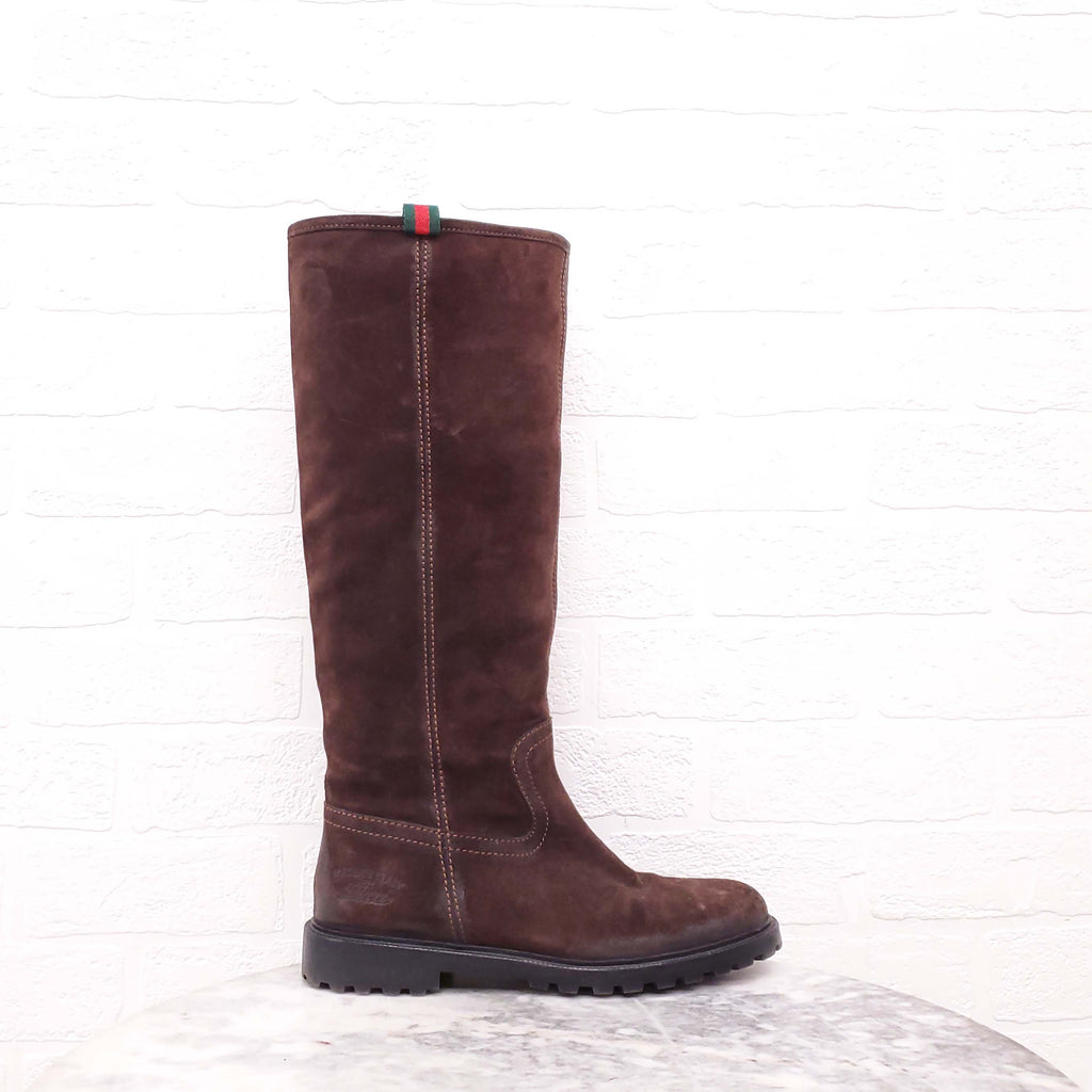 GUCCI BROWN SUEDE DISTRESSED RIDING BOOTS - SIZE 38