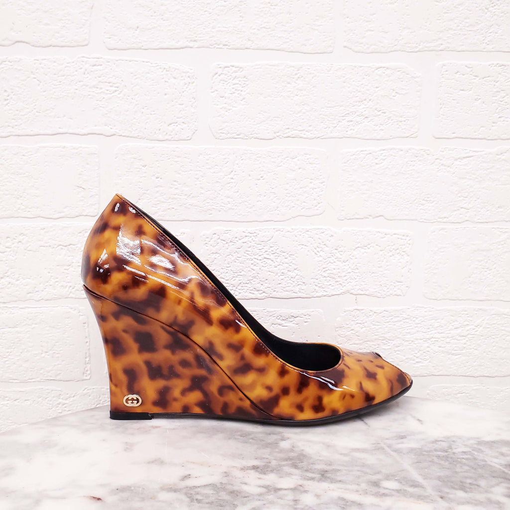 GUCCI TORTOISE WEDGE HEELS - SIZE 38.5
