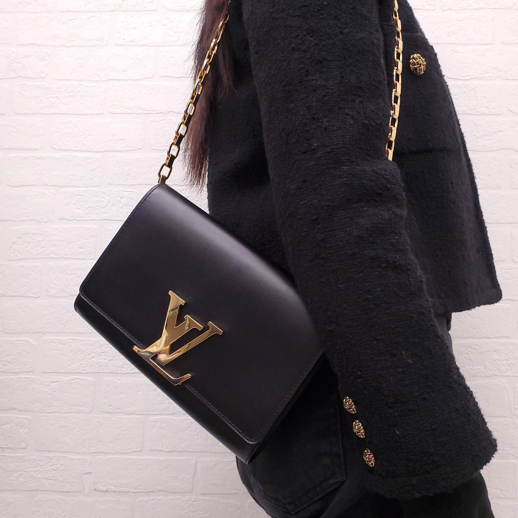 LOUIS VUITTON BLACK LV MONOGRAM LOUISE CLUTCH GM