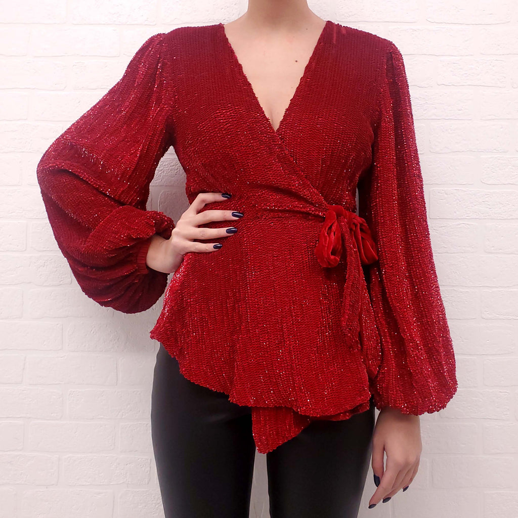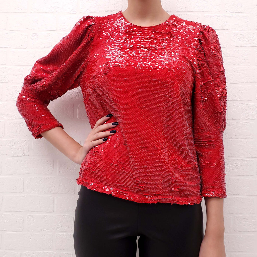 ALLEN SCHWARTZ RED SEQUIN BLOUSE - SIZE M