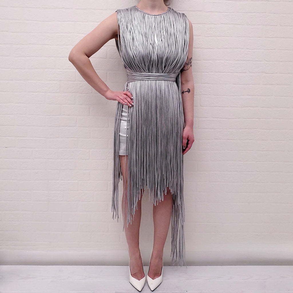 AREA METALLIC MINI FRINGE DRESS - SIZE S