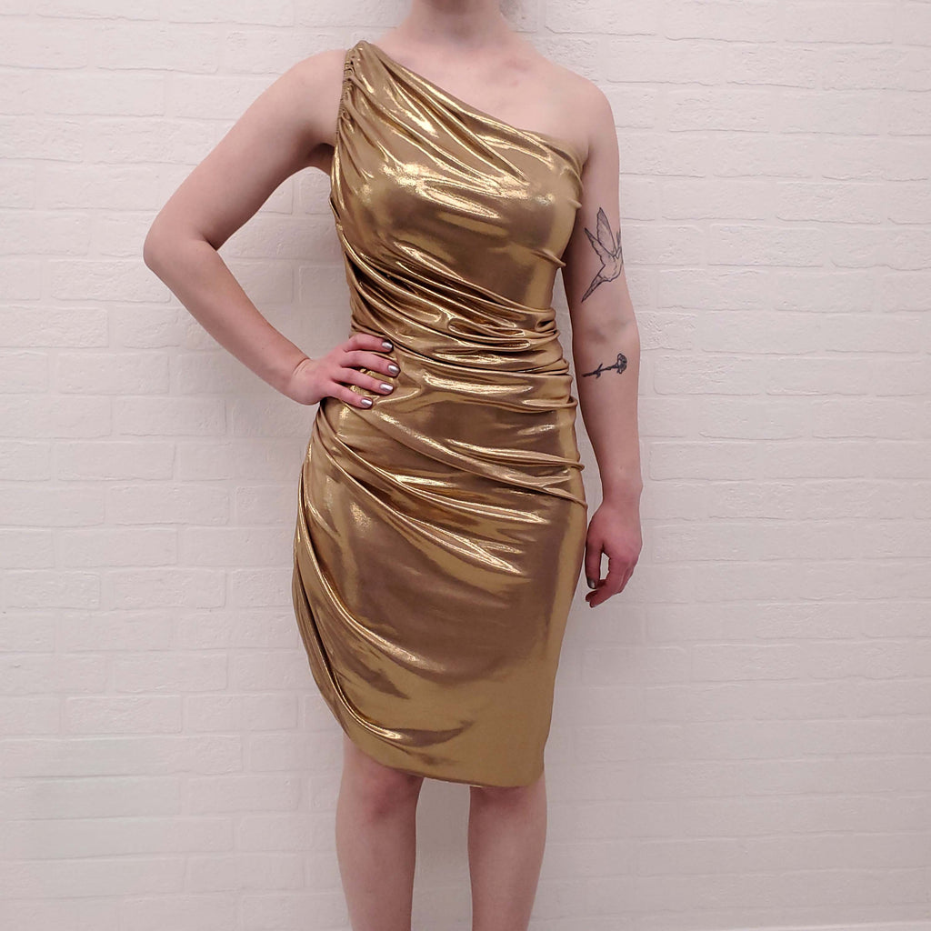 NORMA KAMALI GOLD RUCHED DRESS - SIZE M