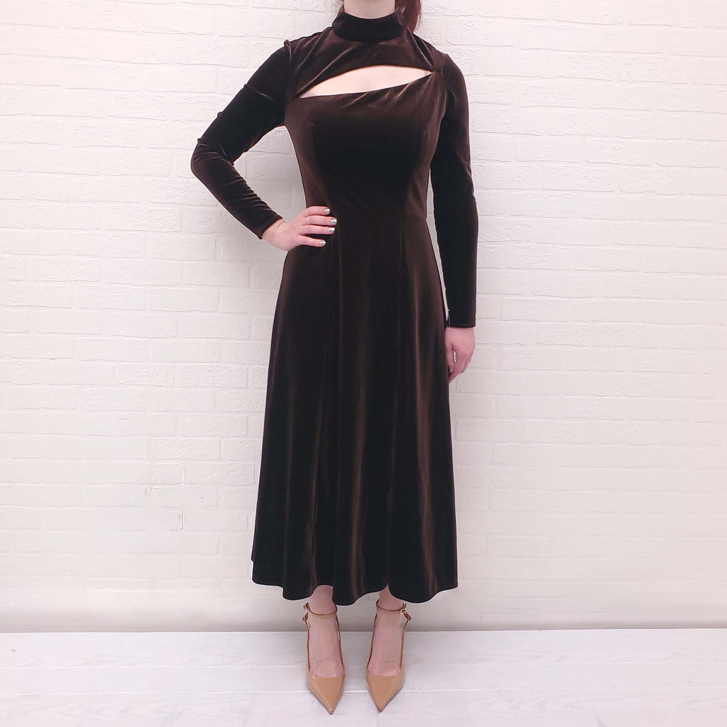 RENE RUIZ BROWN VELVET DRESS - SIZE 6