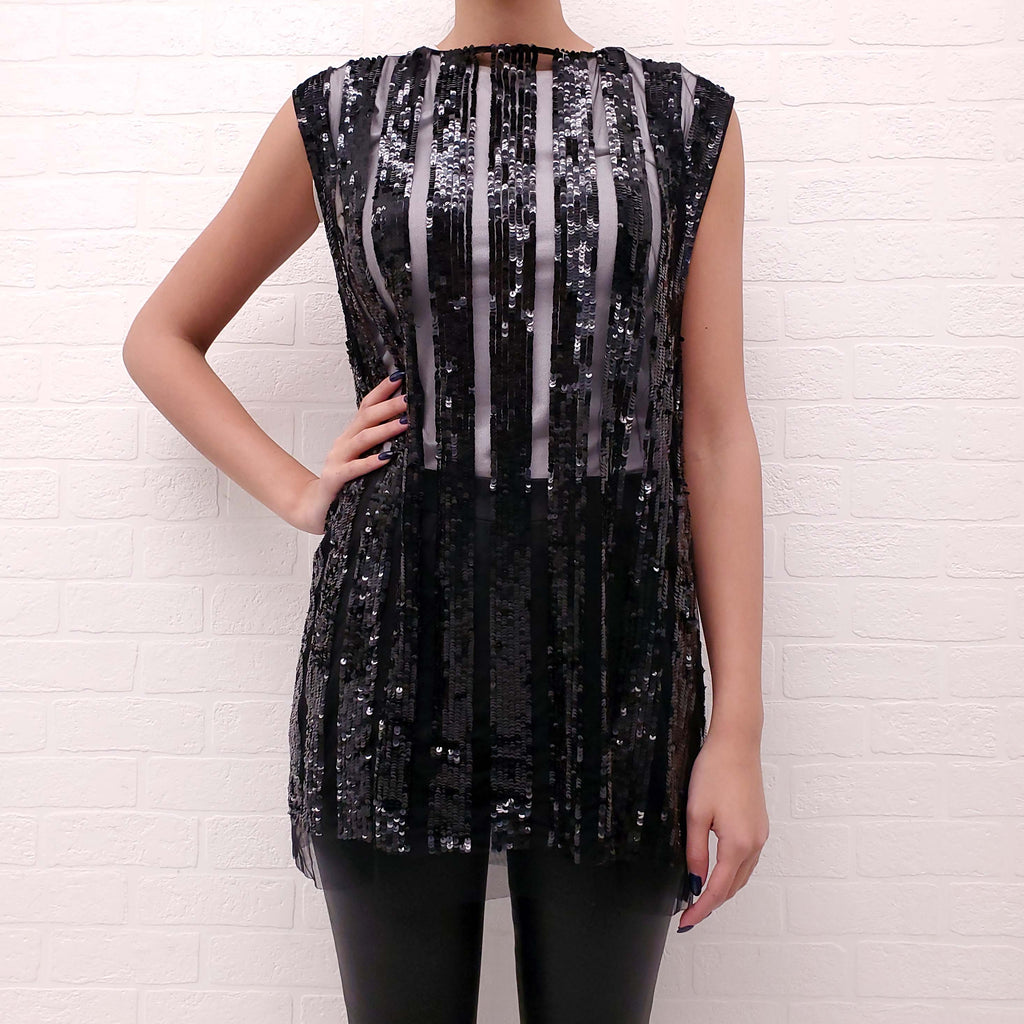 VINTAGE STRIPED TUNIC SLEEVELESS SEQUIN BLOUSE - SIZE M