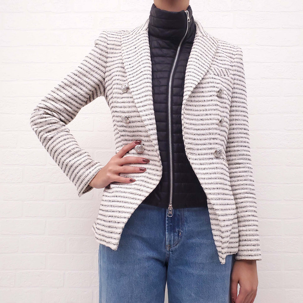VERONICA BEARD WHITE AND BLACK TWEED DICKIE BLAZER - SIZE 2