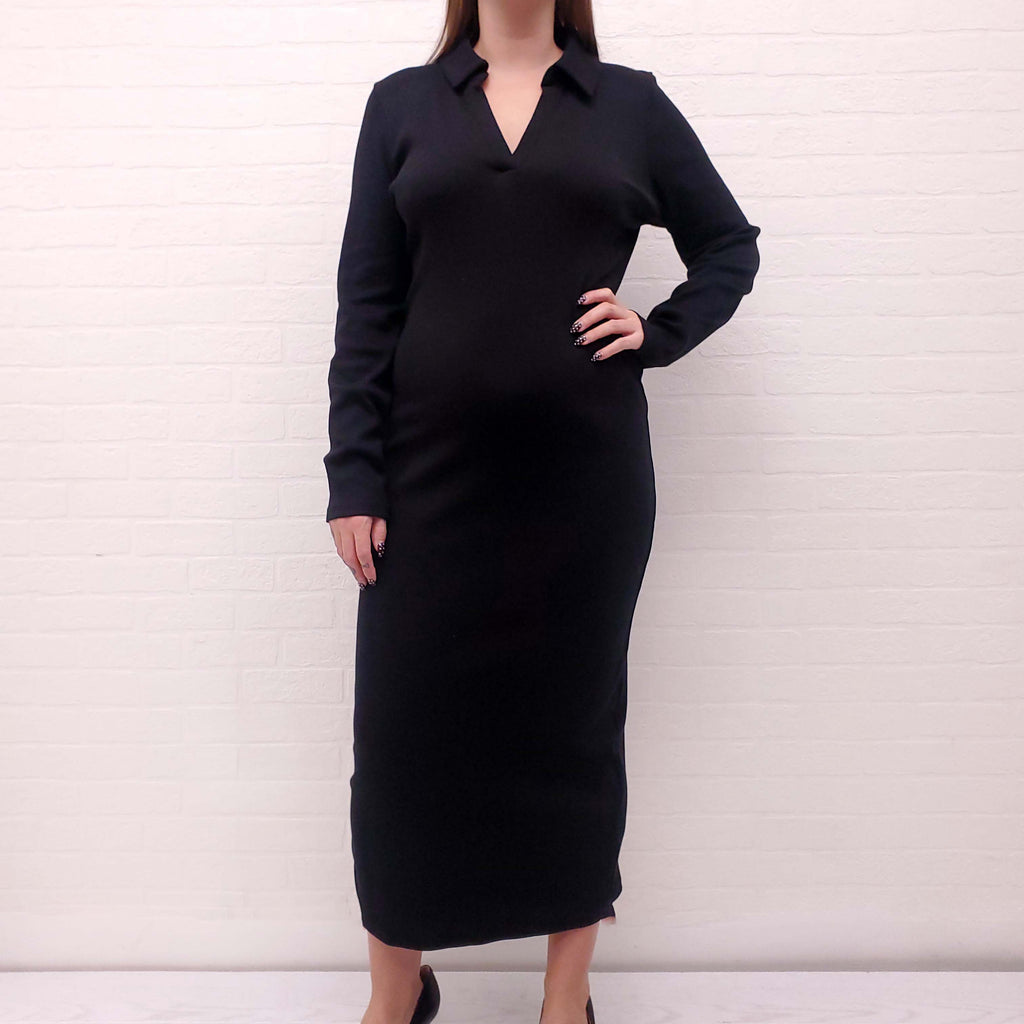 VERONICA BEARD BLACK RIBBED T-SHRT DRESS - SIZE L