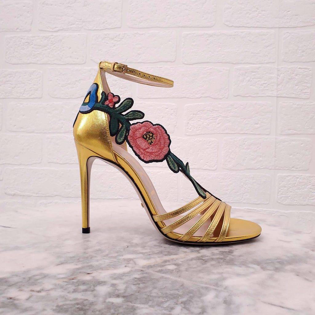GUCCI GOLD FLORAL EMBOIRDERED HEELS - SIZE 37.5