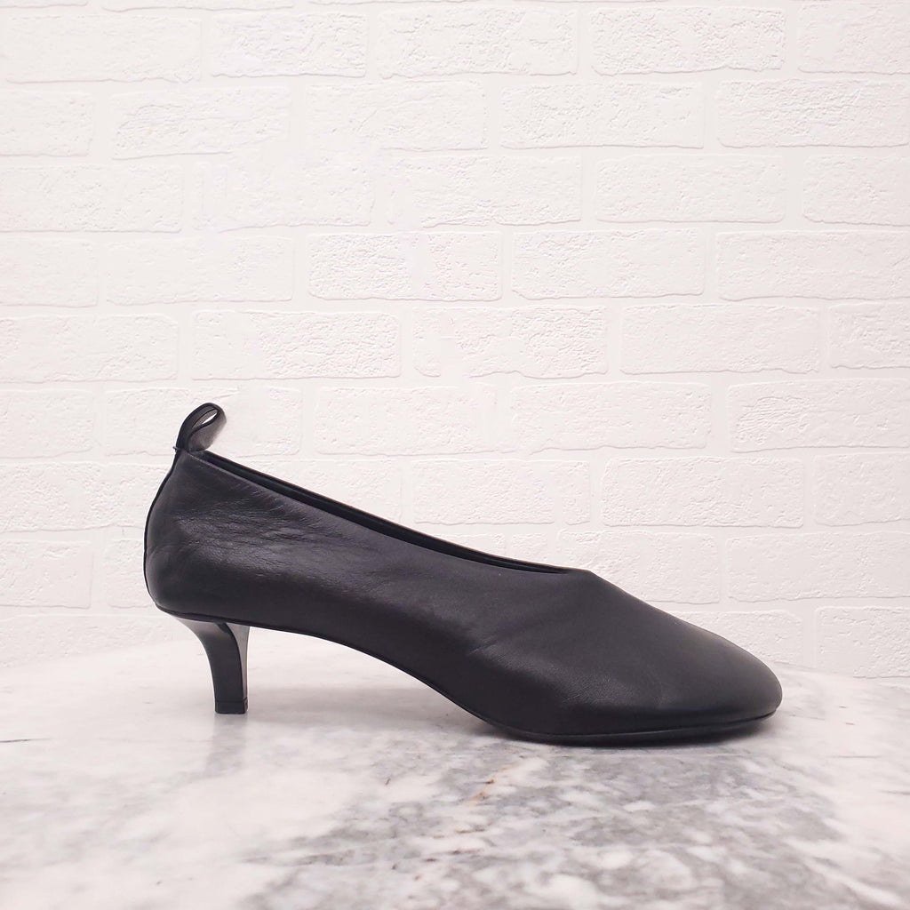 JIL SANDER BLACK LEATHER ROUND TOE KITTEN HEELS - SIZE 40