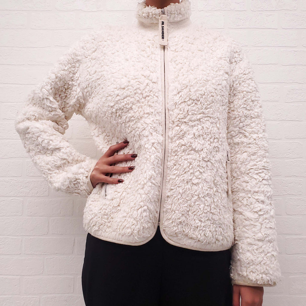 JIL SANDER CREAM FAUX SHEARLING JACKET WITH LOGO ZIPPER - SIZE S