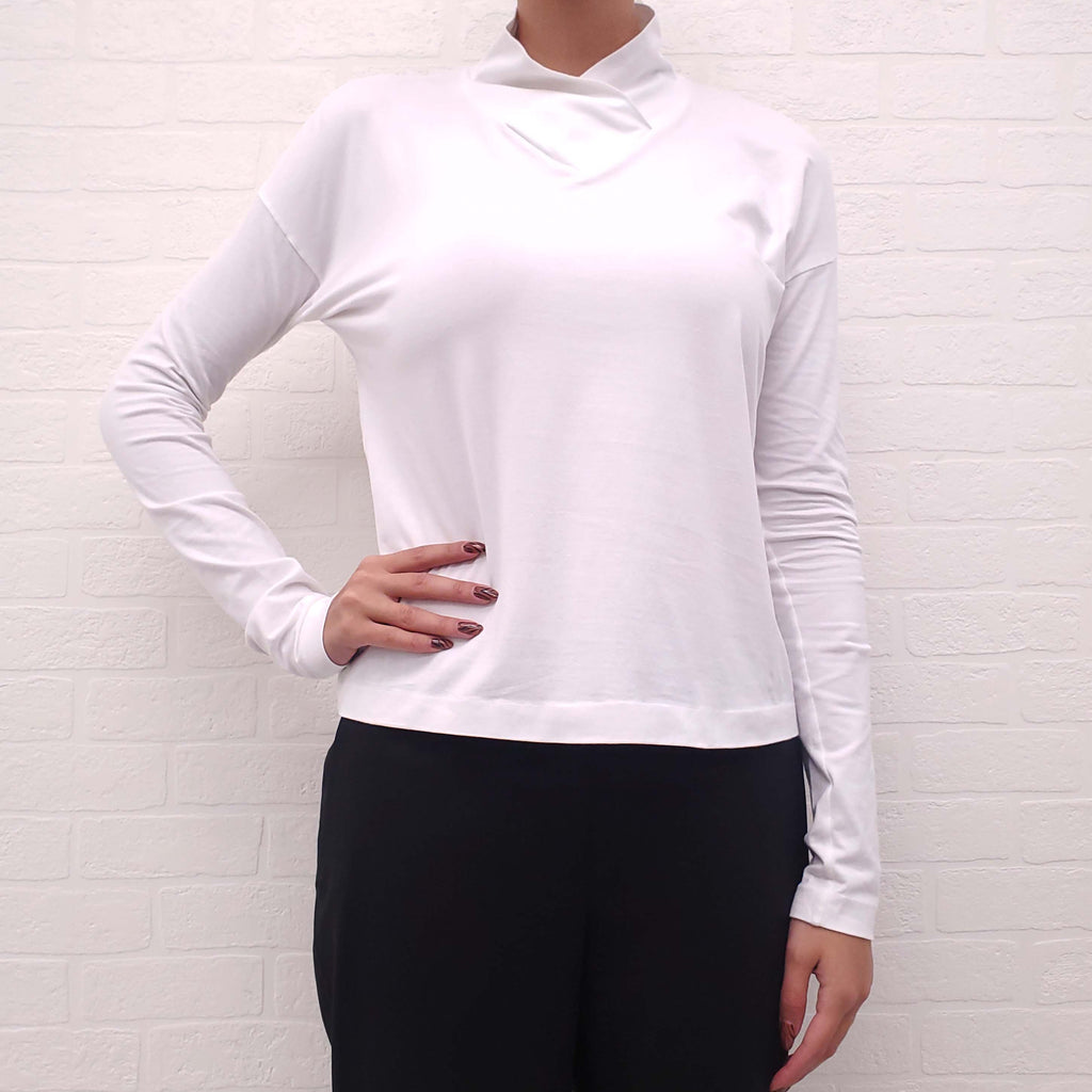 JIL SANDER WHITE MOCK TURTLENECK LONG SLEEVE SHIRT - SIZE XL