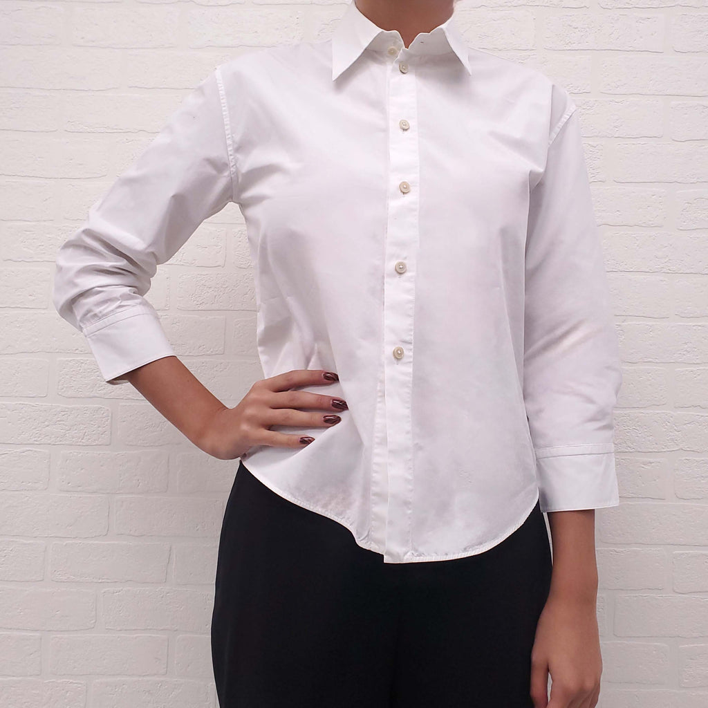 JIL SANDER WHITE OVERSIZED COTTON BUTTON UP BLOUSE - SIZE 32