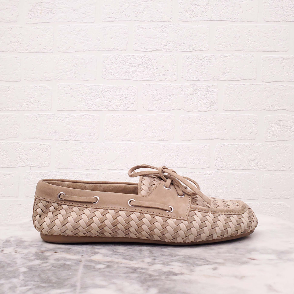 MIU MIU KHAKI SUEDE WOVEN LOAFERS - SIZE 38