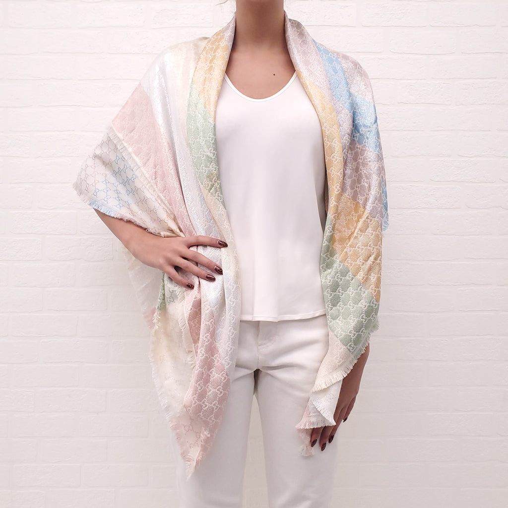 GUCCI METALLIC TAN AND BROWN 'GG WOOL JACQUARD’ SCARF
