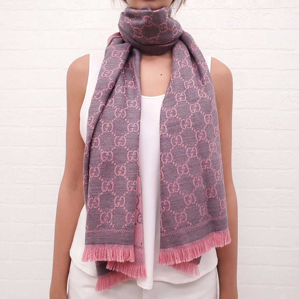 GUCCI LOGO SCARF WITH FLORAL PRINT