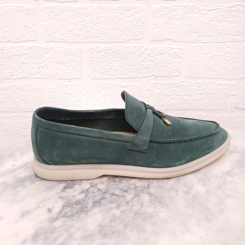 LORO PIANA GREEN SUEDE 'SUMMER CHARMS WALK' LOAFERS - SIZE 39