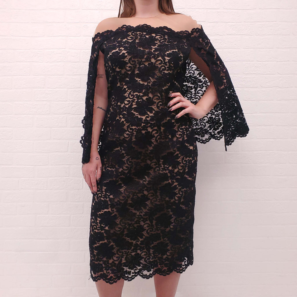 OSCAR DE LA RENTA BLACK LACE DRESS WITH CAPE DETAIL - SIZE 10