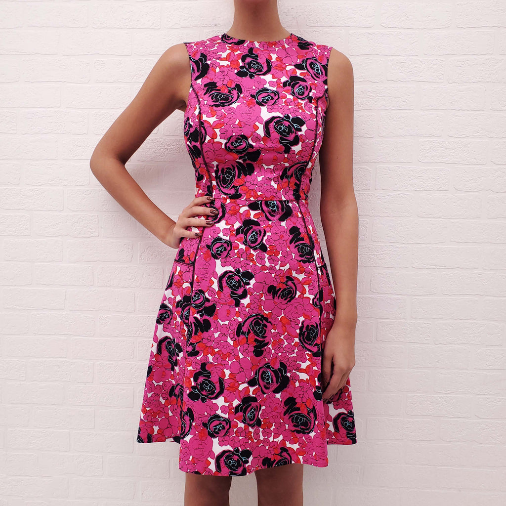 OSCAR DE LA RENTA FUCHSIA FLORAL COTTON DRESS - SIZE 0