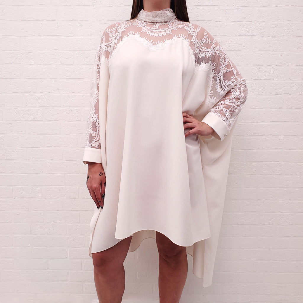OSCAR DE LA RENTA WHITE SILK DRESS WITH LACE DETAIL - SIZE 10