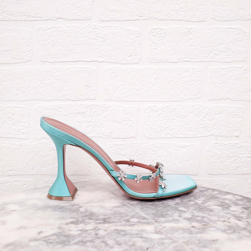 AMINA MUADDI TIFFANY BLUE FLORAL CRYSTAL HEELS - SIZE 40.5