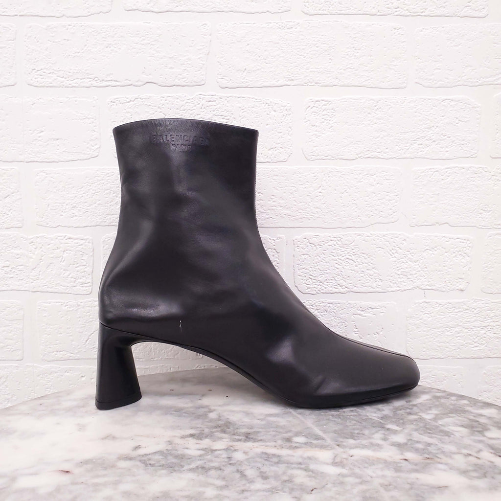 BALENCIAGA BLACK LEATHER SQUARE TOE BOOTS - SIZE 41