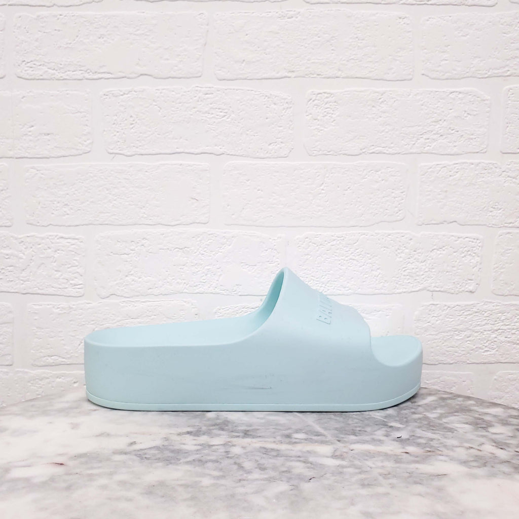 BALENCIAGA SEAFOAM CHUNKY RUBBER LOGO SLIDES - SIZE 40C