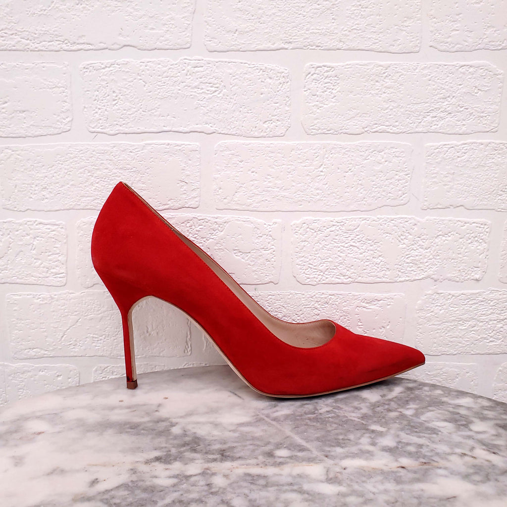 MANOLO BLAHNIK RED SUEDE HEELS - SIZE 41
