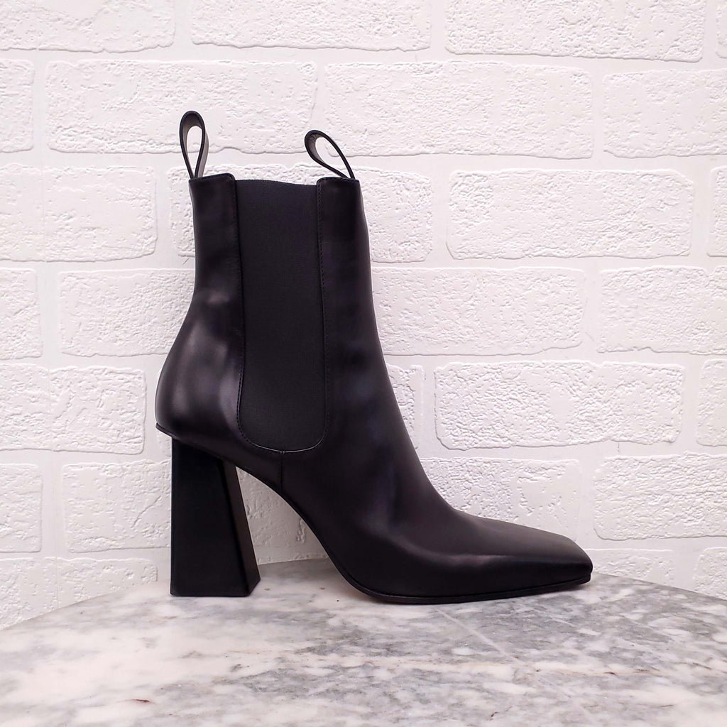 PROENZA SCHOULER BLACK LEATHER SQUARE TOE CHELSEA BOOTS - SIZE 39