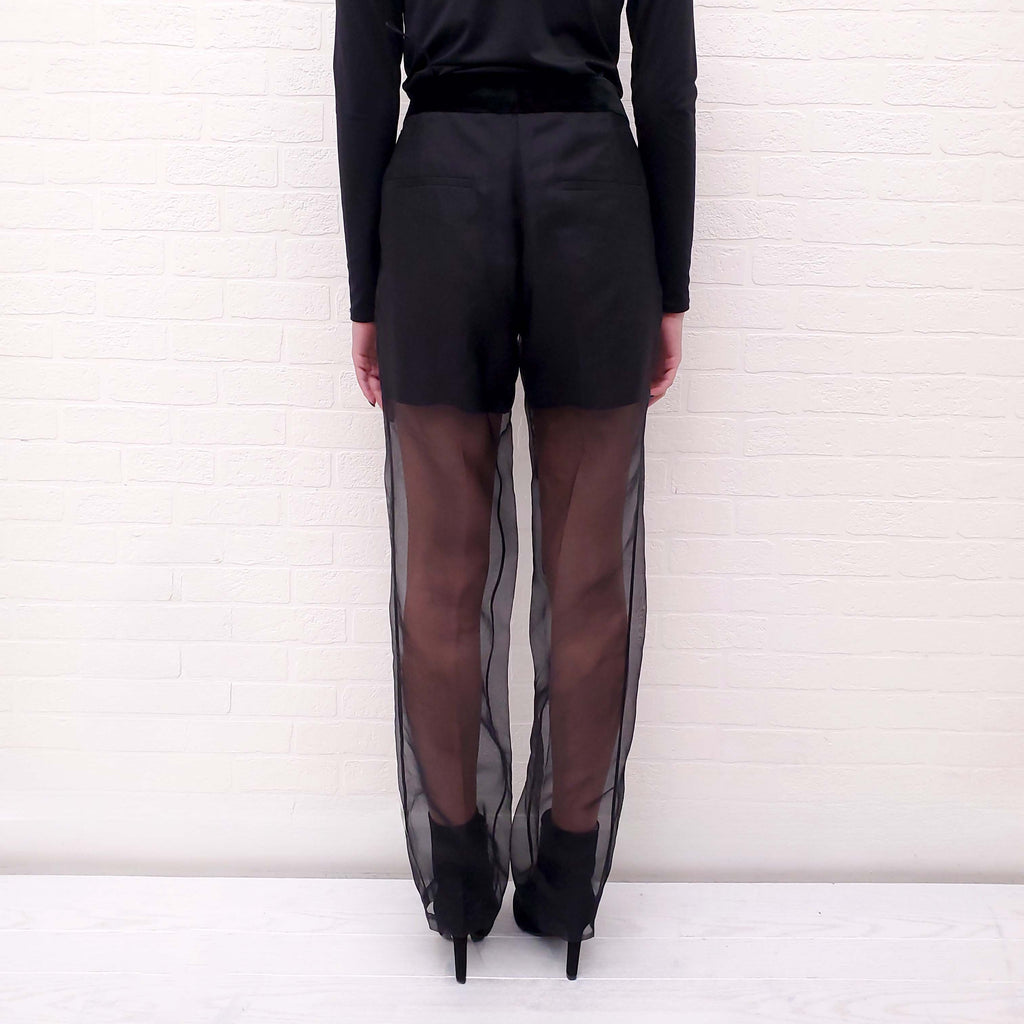 HELMUT LANG BLACK ORGANZA SHEER STRAIGHT LEG PANTS - SIZE 6