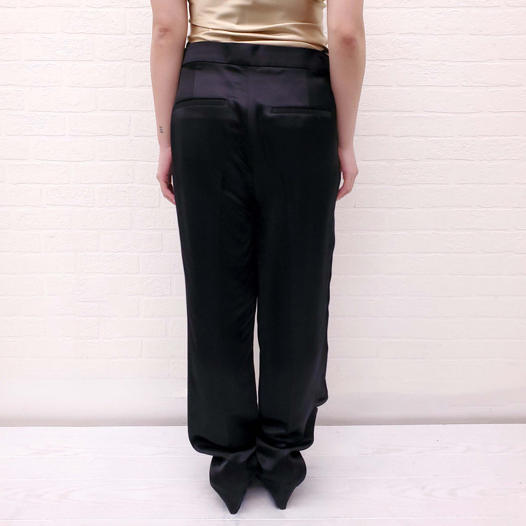 HELMUT LANG BLACK SATIN EFFECT TROUSERS - SIZE 8