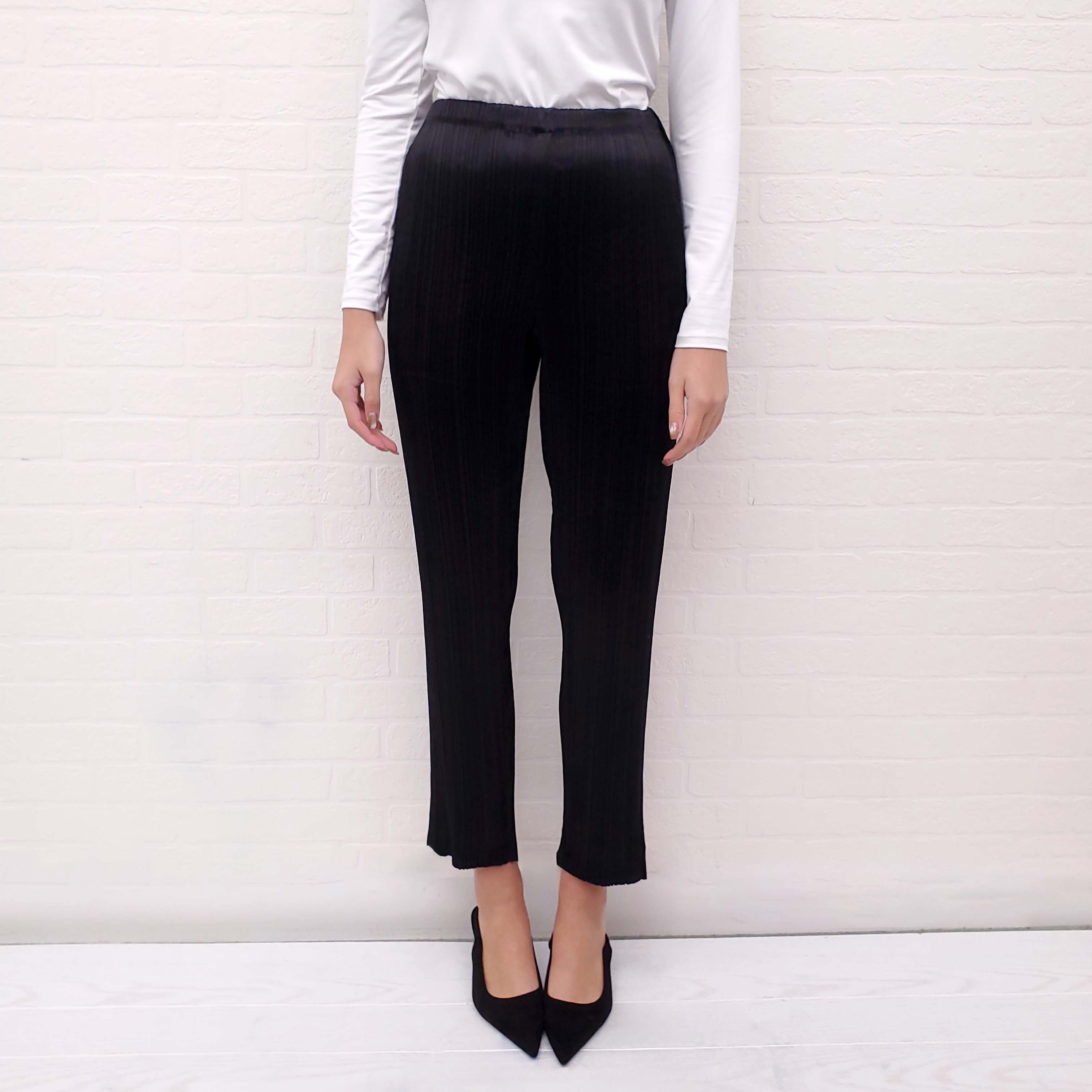 ISSEY MIYAKE BLACK SHINY 'PLEATS PLEASE' PANTS - SIZE 2/S