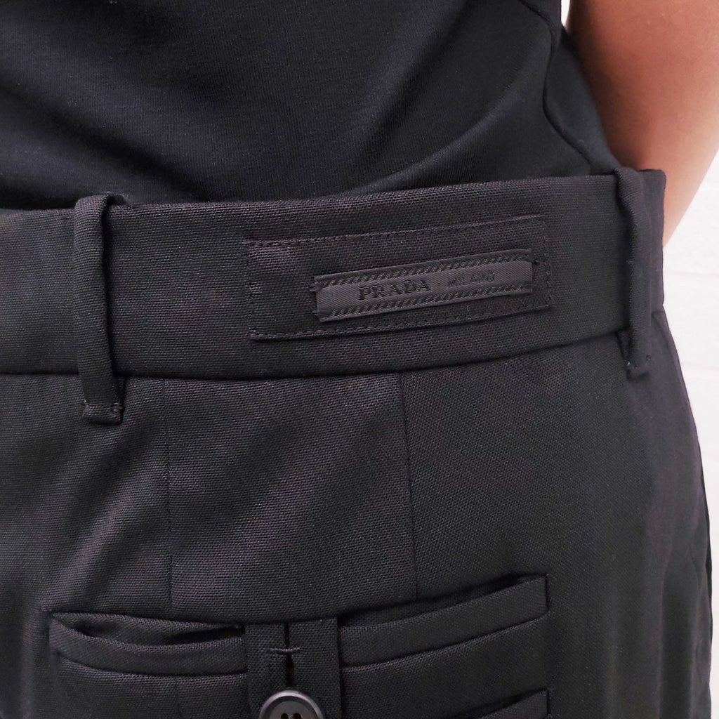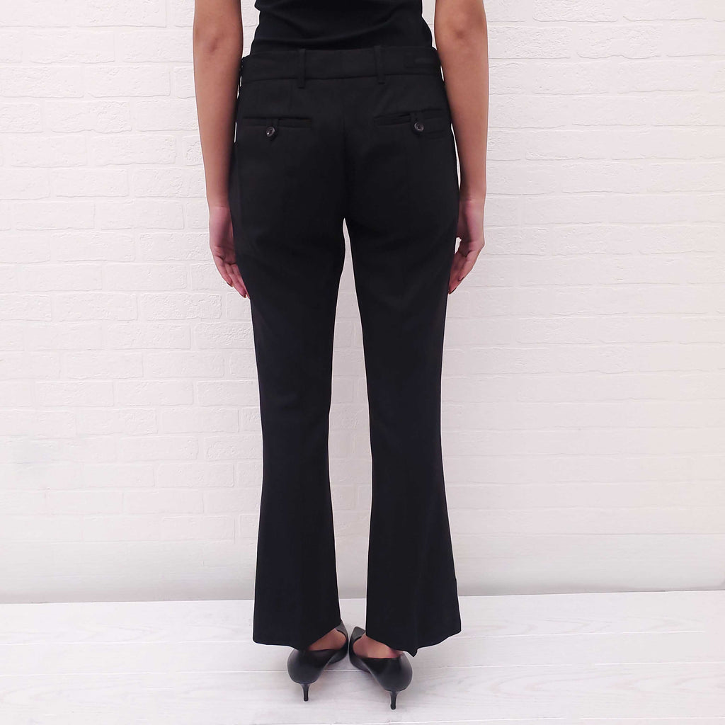 PRADA BLACK FLARE WOOL TROUSERS WITH LOGO DETAIL - SIZE 42