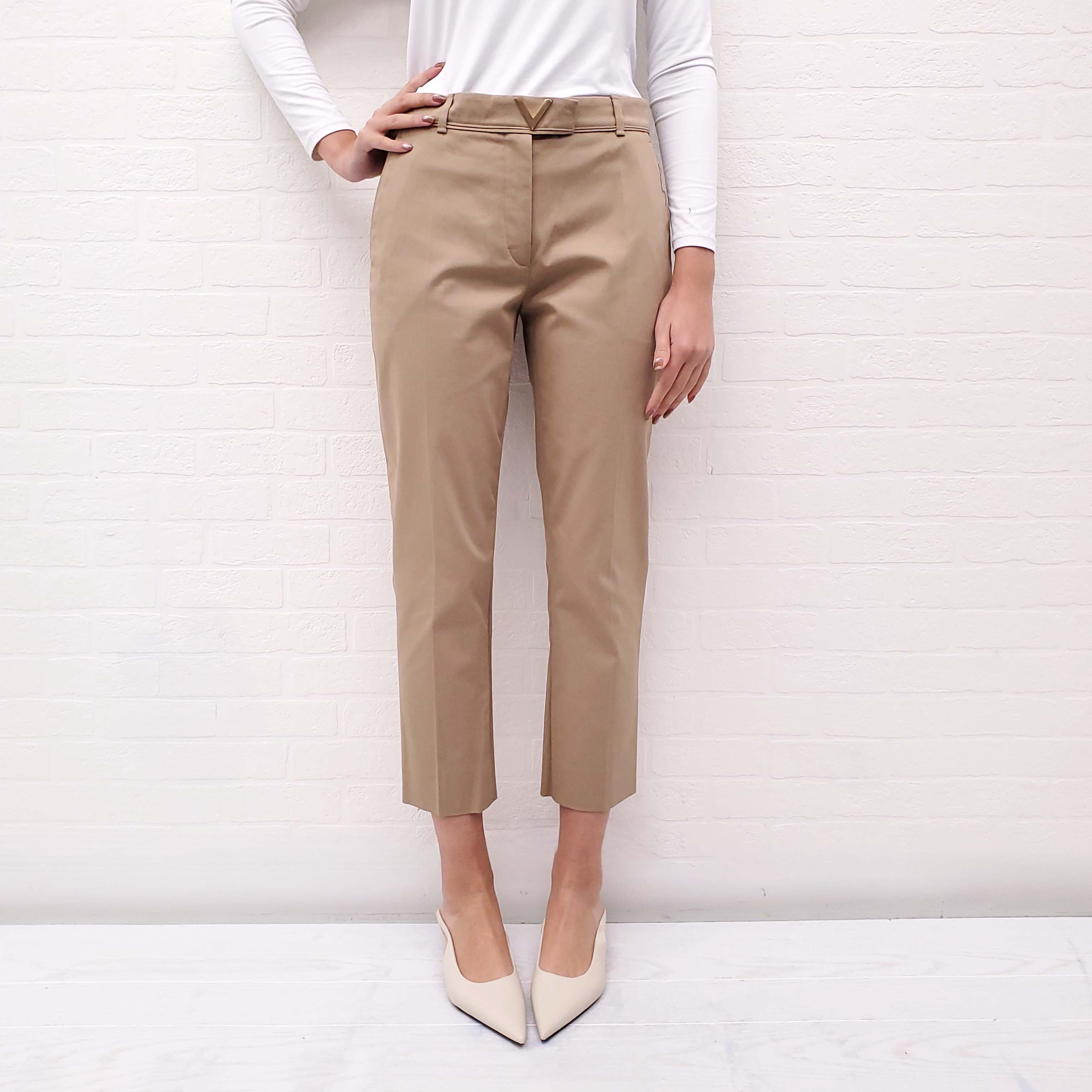 VALENTINO KHAKI TROUSERS WITH LOGO - SIZE 42