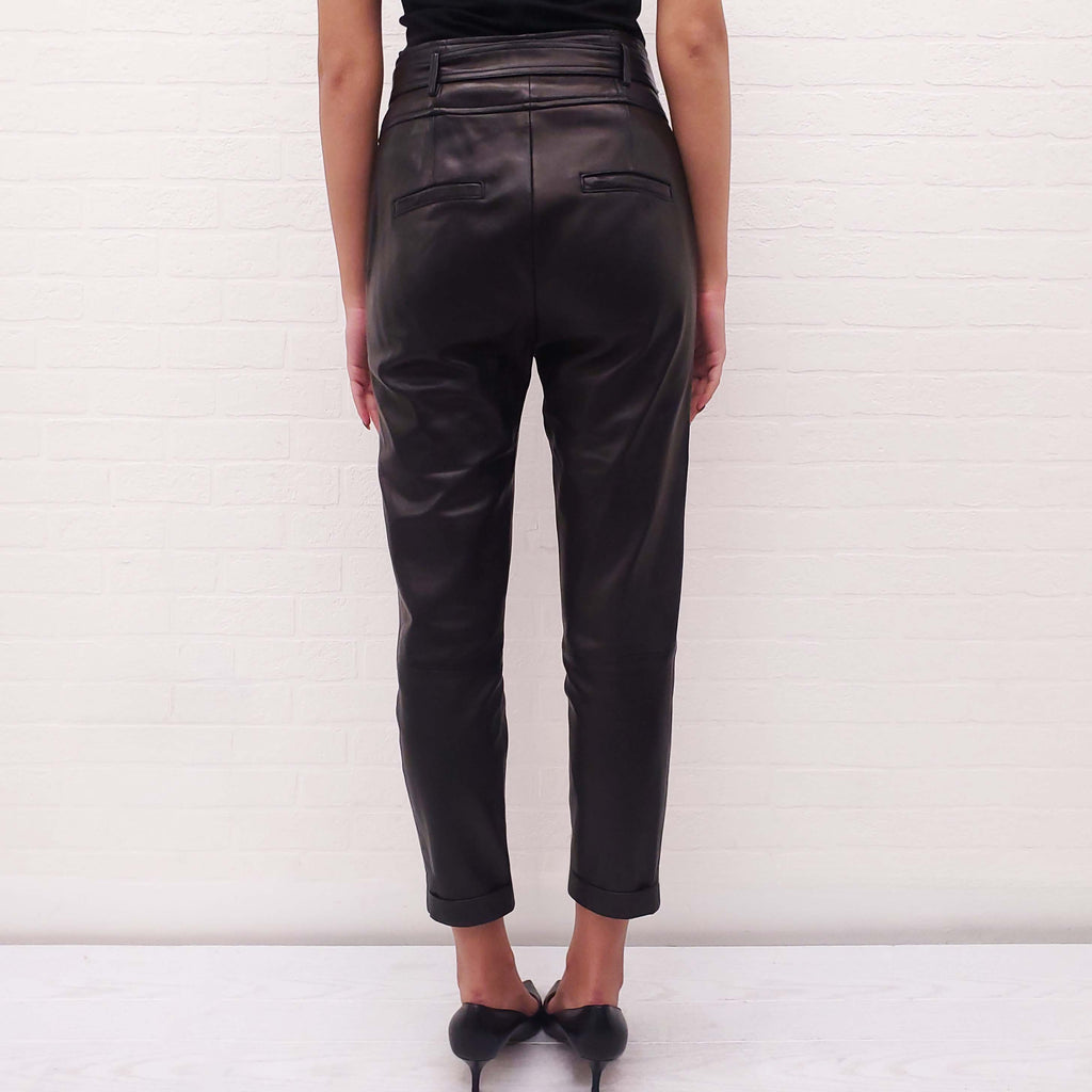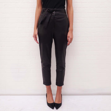 VERONICA BLACK LEATHER PANTS WITH TIE - SIZE 4